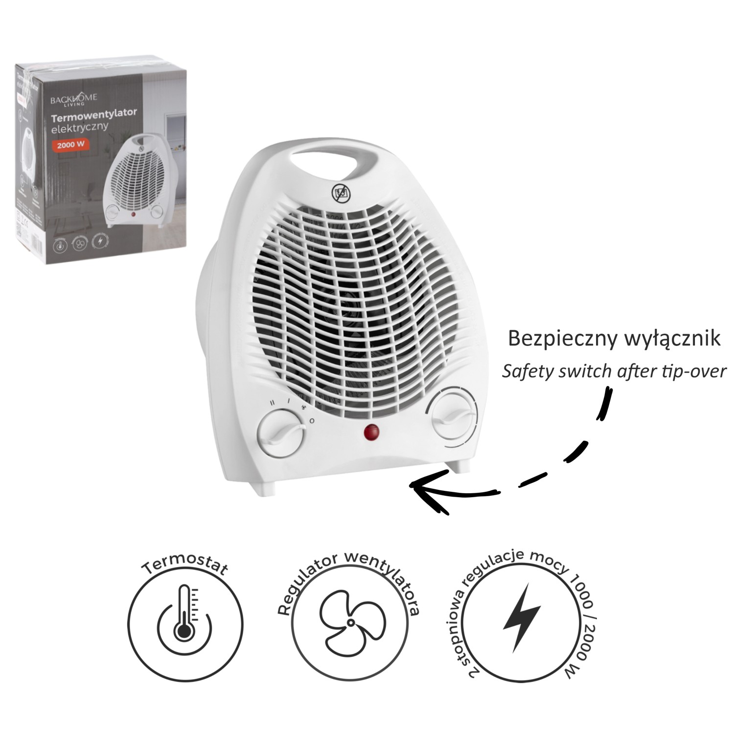 Цей сучасний електричний термовентилятор – ідеальне рішення, коли ви хочете швидко нагріти приміщення або охолодити його легким потоком повітря. Завдяки двоступеневому регулюванню потужності (1000 Вт / 2000 Вт) ви легко налаштуєте температуру відповідно до своїх потреб. Пристрій поєднує функціональність, безпеку та елегантний дизайн, завдяки чому він підійде як для дому, так і для офісу чи майстерні.