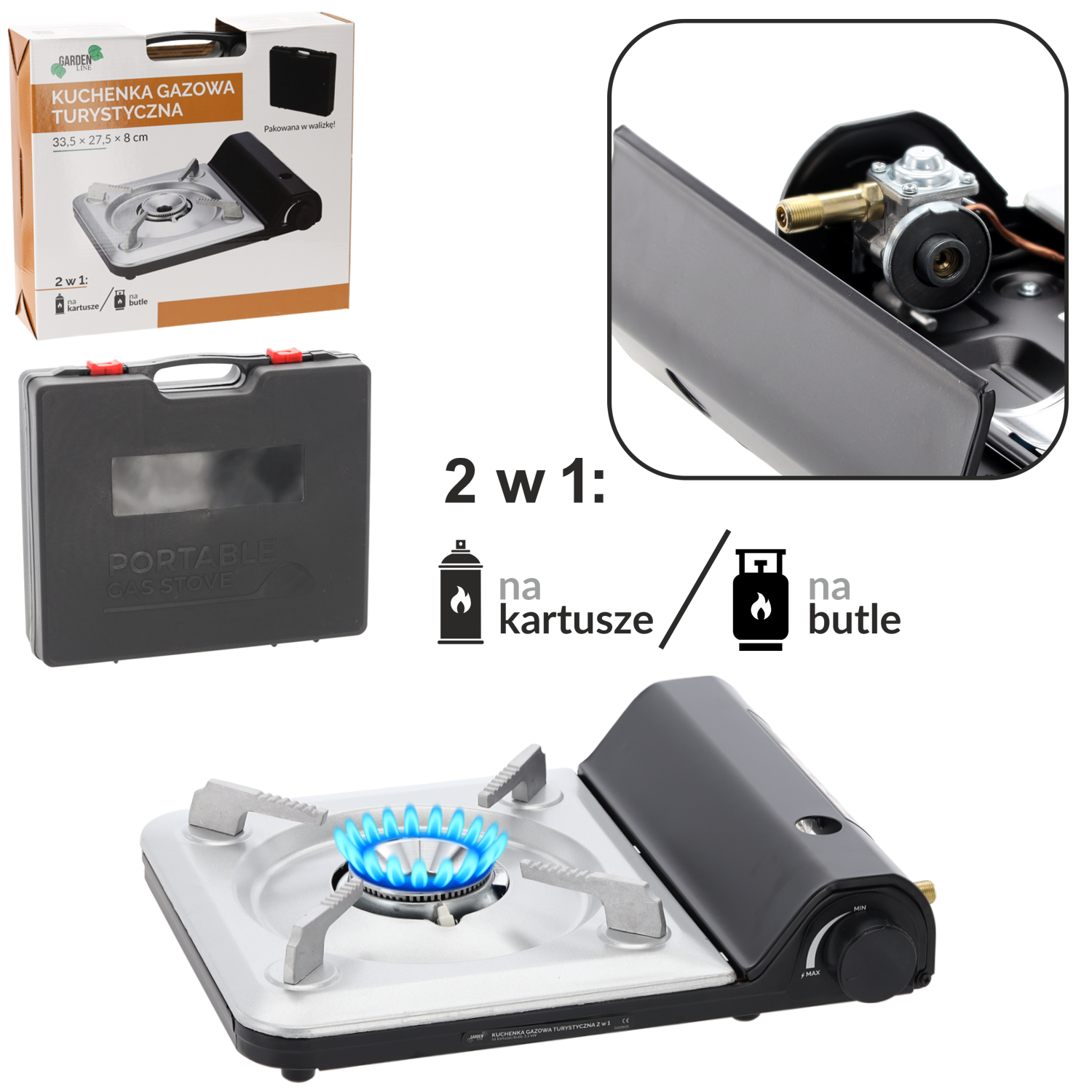 Вона вражає потужністю 3,5 кВт, компактною формою та безпечним п'єзоелектричним запалюванням. Все упаковано в практичний кейс, який поміститься в будь-якому багажнику. 🚗