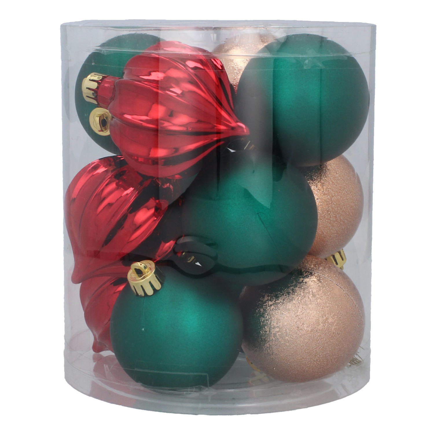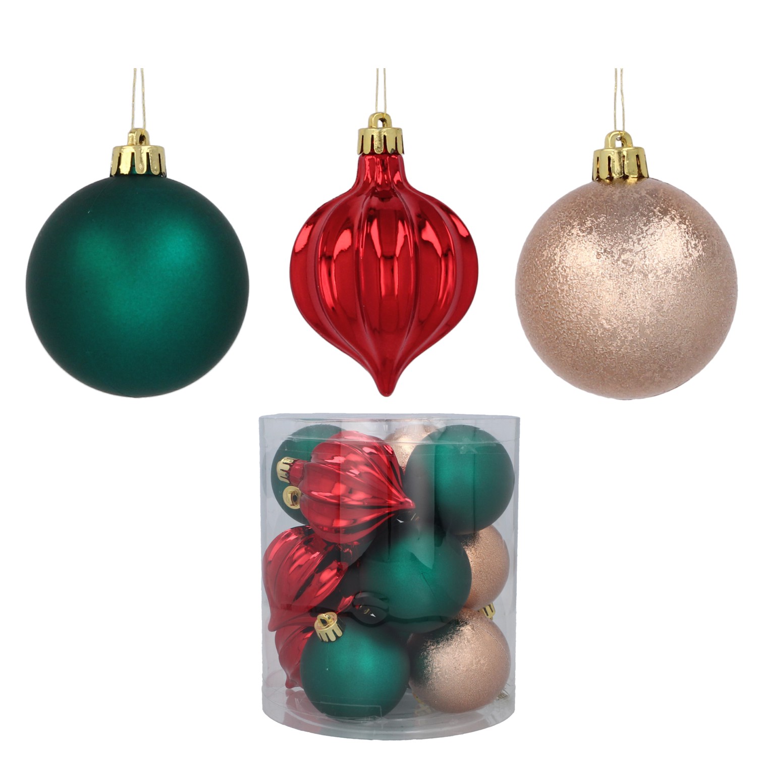 Набір кульок зеленого, золотого та червоного кольорів додасть вашій ялинці чарівності та святкової магії!
