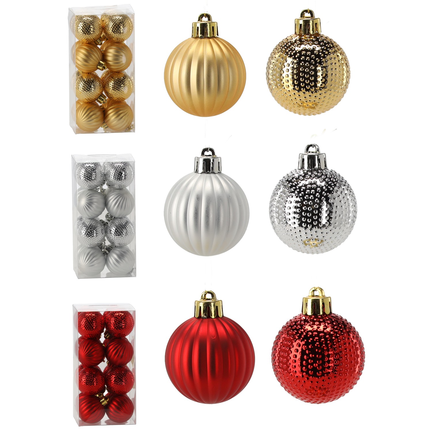 Мрієте створити унікальну та стильну ялинку, яка приверне увагу всіх під час свят? Наш набір елегантних кульок для ялинки діаметром 4 см - це ідеальний вибір, який додасть неповторного шарму вашому святковому декору. Доступні кольори: червоний, золотий, срібний. Кульки вражають не тільки своїм зовнішнім виглядом, але й якістю виготовлення, оскільки вони виготовлені з небиткого матеріалу.