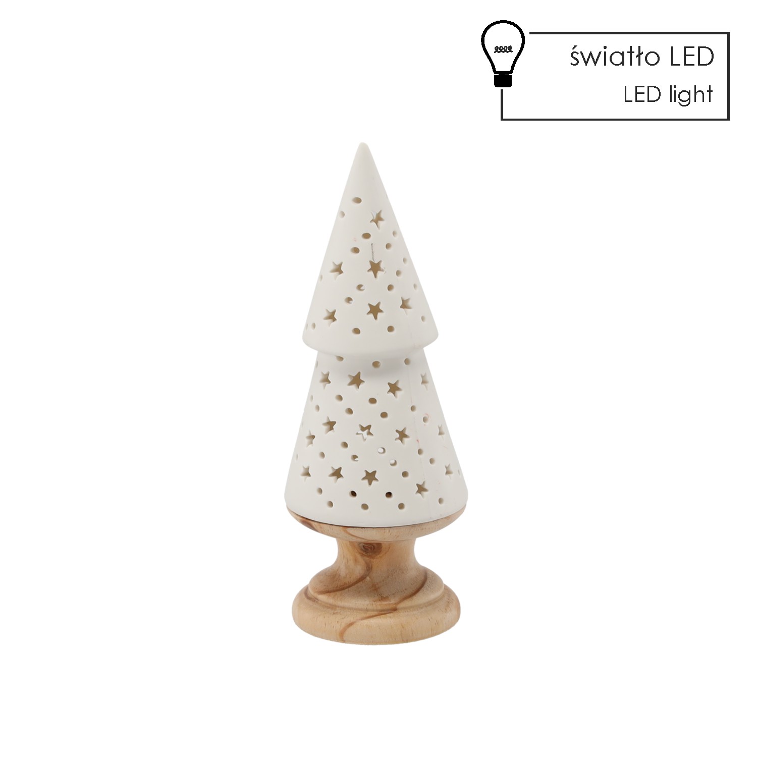 Різдвяна фігурка «Ялинка» з кераміки та світлодіодамиЖивлення: 3 батарейки LR44 (батарейки в комплекті)Матеріал: керамікаРозміри: 8,2 x 8,2 x 21,5 см