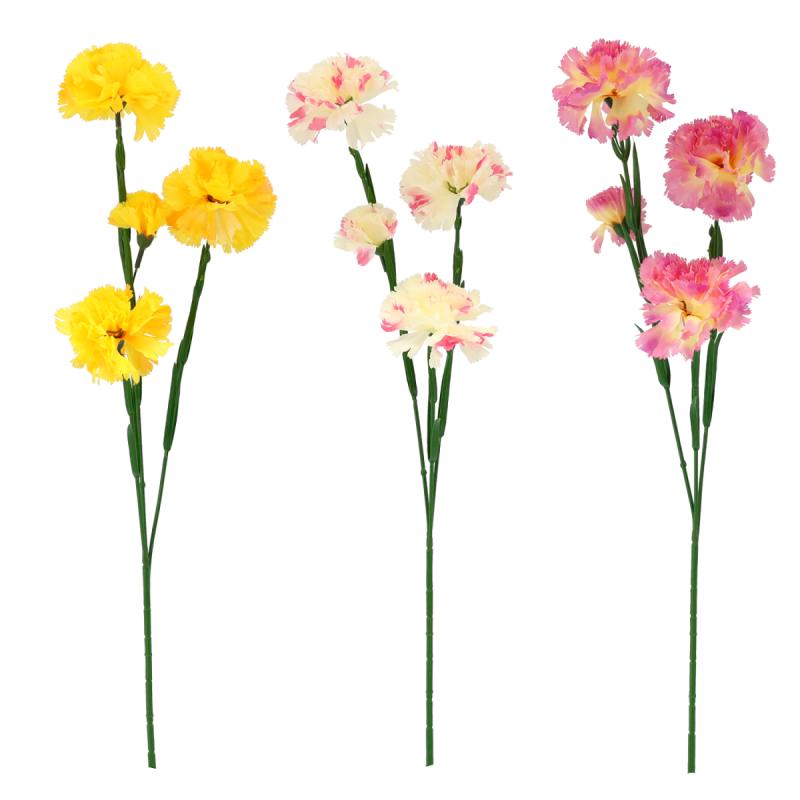 ШТУЧНА ГІЛКА - ГВОЗДИКА З ТРЬОМА КВІТАМИ 67 СМ, РІЗНІ КОЛЬОРИ Штучна гілка гвоздики з трьома квітами - це чудова прикраса, яка оживить будь-який інтер'єр. Виготовлена з високоякісних матеріалів, вона гарантує довговічність і реалістичний вигляд. Кожна гілка має довжину 67 см, а її багата композиція з трьох квіток різних кольорів створює ефектне ціле. Ідеально підходить для створення букетів, декорування столів або як декоративний елемент у вазі. Завдяки універсальному поєднанню кольорів, вона пасує до різних стилів інтер'єру – від класичного до сучасного. Використовуйте її для створення унікальних квіткових композицій у своєму домі.
