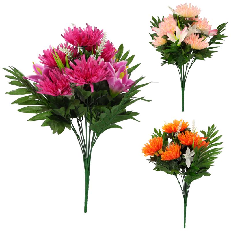 Штучна гілка - букет лілій і хризантем 42 x 24 x 24 см, мікс кольорів