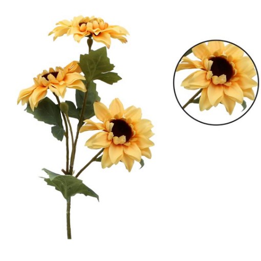 Внесіть у інтер'єр тепло та літній настрій завдяки ефектній декорації – штучній гілочці соняшника висотою 50 см. Реалістично відтворені пелюстки насиченого, сонячного кольору та природні на вигляд листя роблять квітку надзвичайно автентичною 🌿