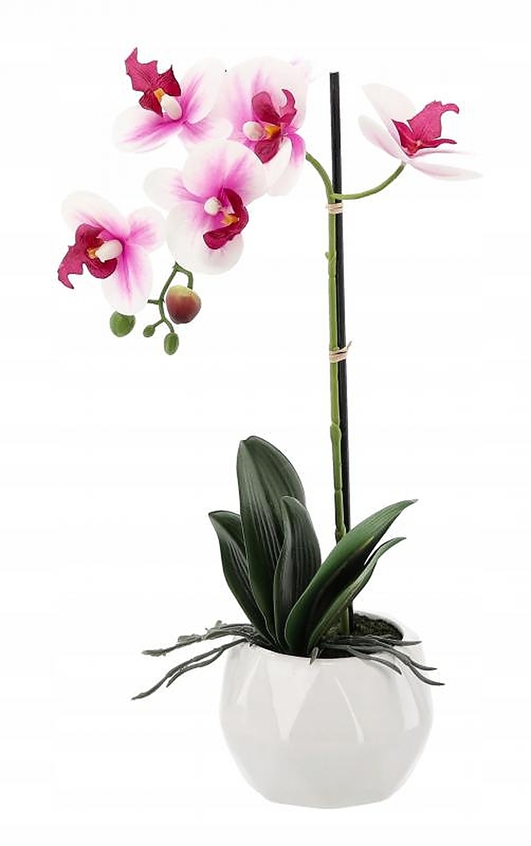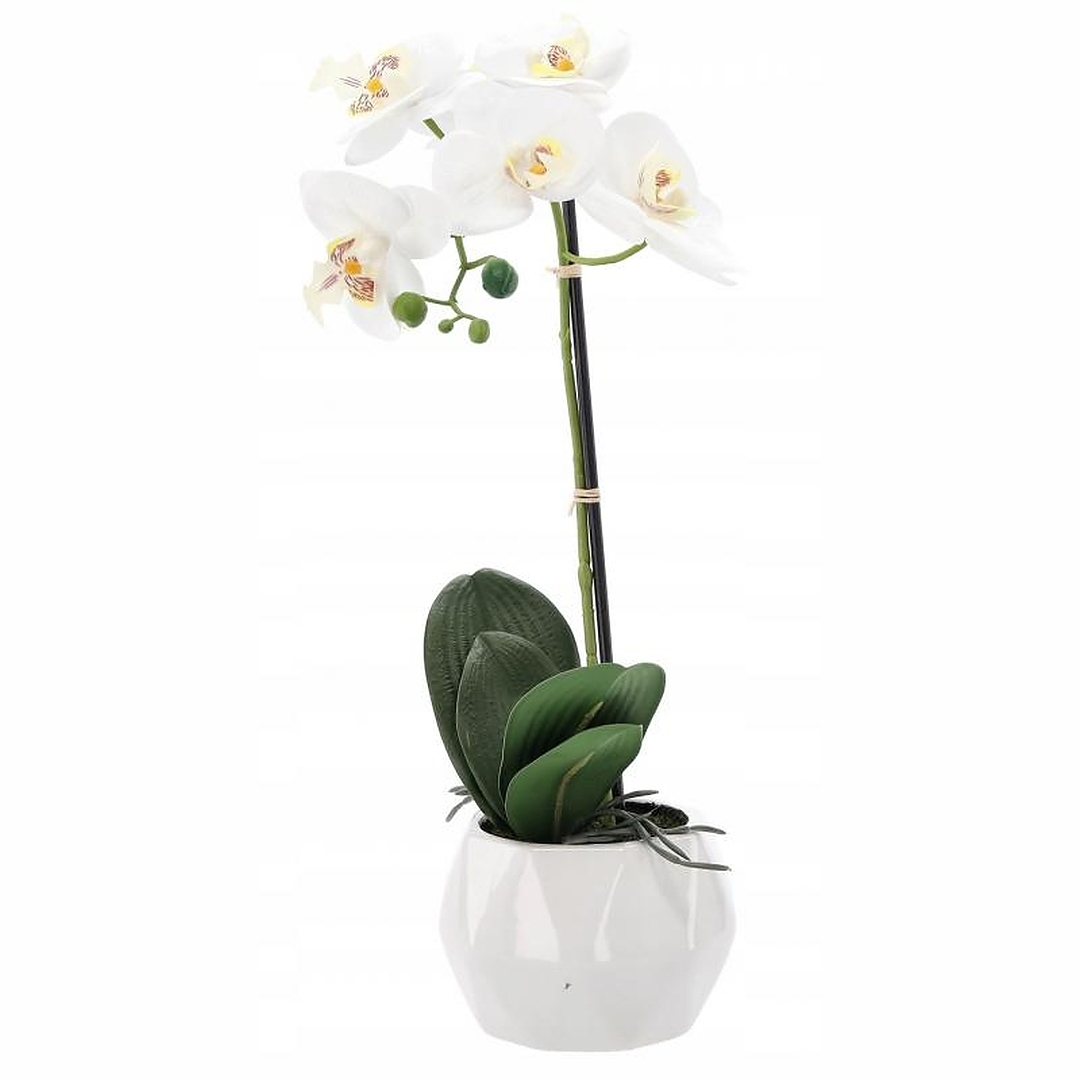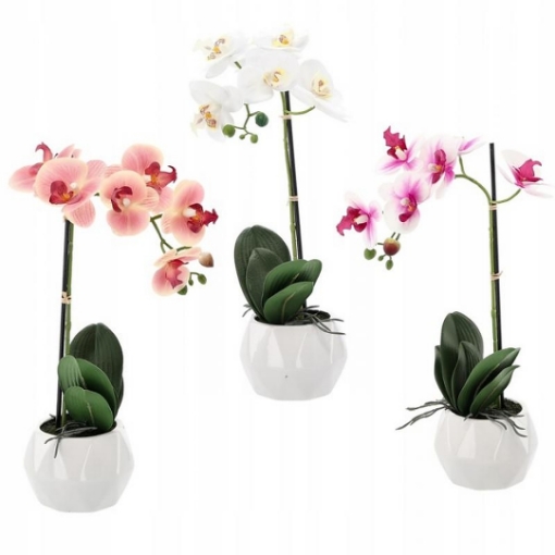 Елегантна штучна орхідея висотою 42 см – чудова прикраса для дому, офісу чи приміщення для надання послуг. У комплекті доступний мікс 3 кольорів – білий, рожевий та персиковий, завдяки чому ви легко підберете її до будь-якого інтер'єру