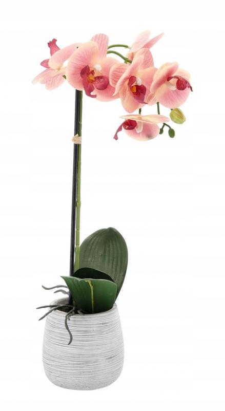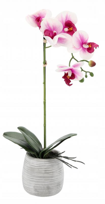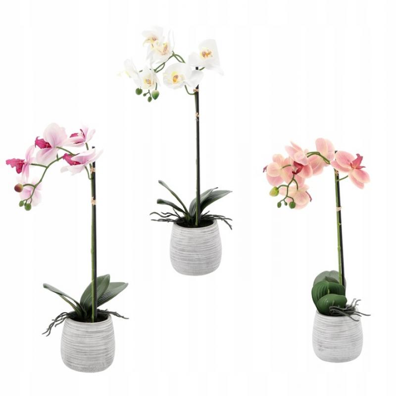Пориньте в красу природи без необхідності постійного догляду завдяки нашій штучній квітці висотою 45 см. Ця реалістично виконана орхідея переносить чарівність справжньої квітки у ваш інтер'єр, додаючи йому шарму та елегантності. Ідеально підійде як прикраса для ванної кімнати.