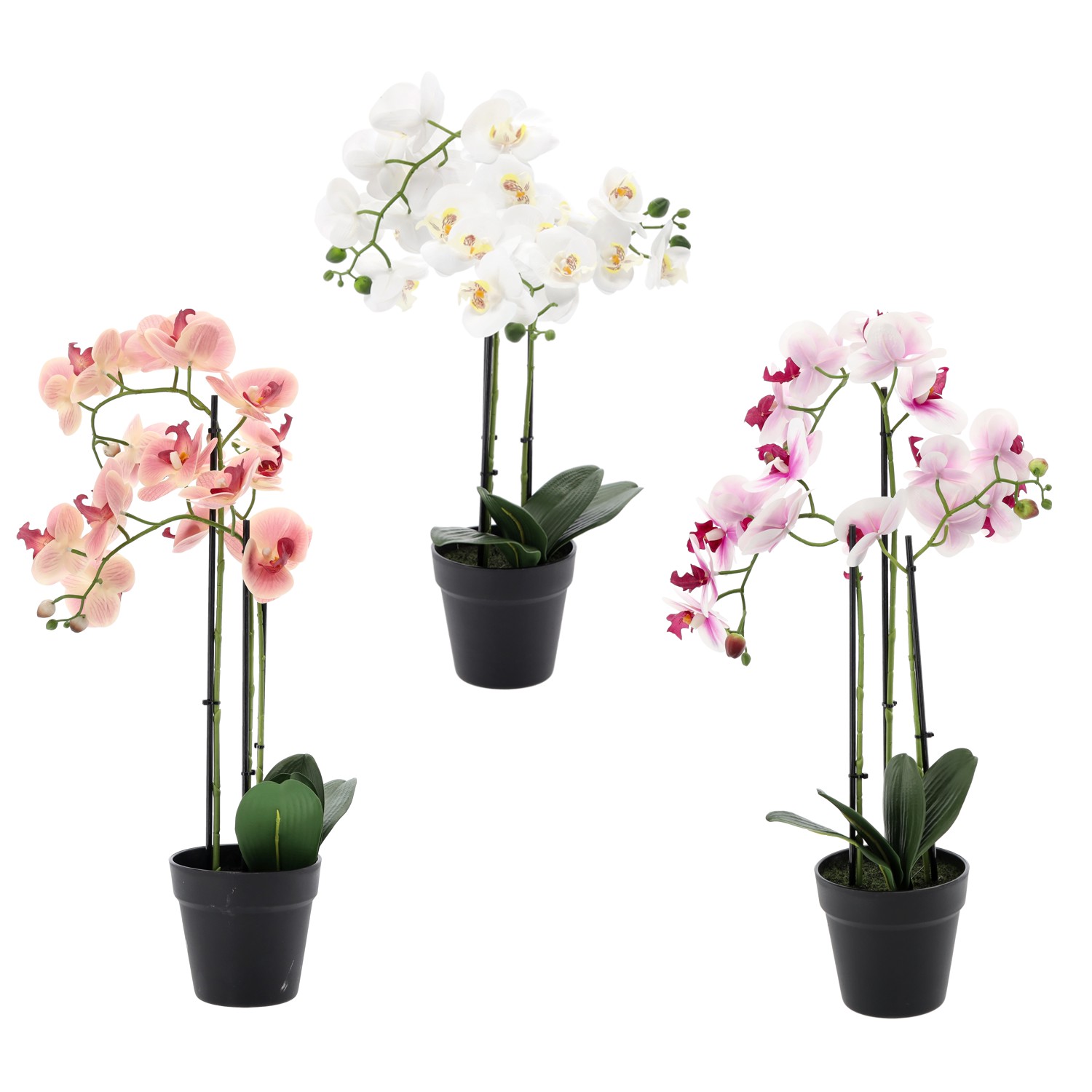 Елегантна штучна орхідея, яка вірно відтворює вигляд живої рослини. Ідеально підходить для декорування інтер'єрів у будинку, офісі чи ресторані. Завдяки високій якості виготовлення зберігає свій вигляд протягом тривалого часу, не потребуючи догляду.