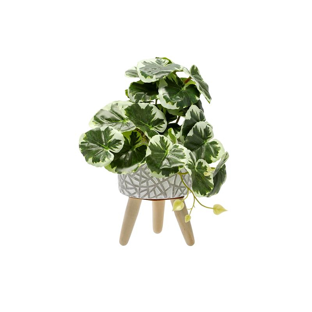 Мінімалістична та елегантна декорація, яка ідеально доповнить сучасні інтер'єри. Рослина висотою 20 см виготовлена з увагою до деталей – декоративні двоколірні листя та стильний горщик на дерев'яних ніжках створюють цілісний та естетичний вигляд 🌱