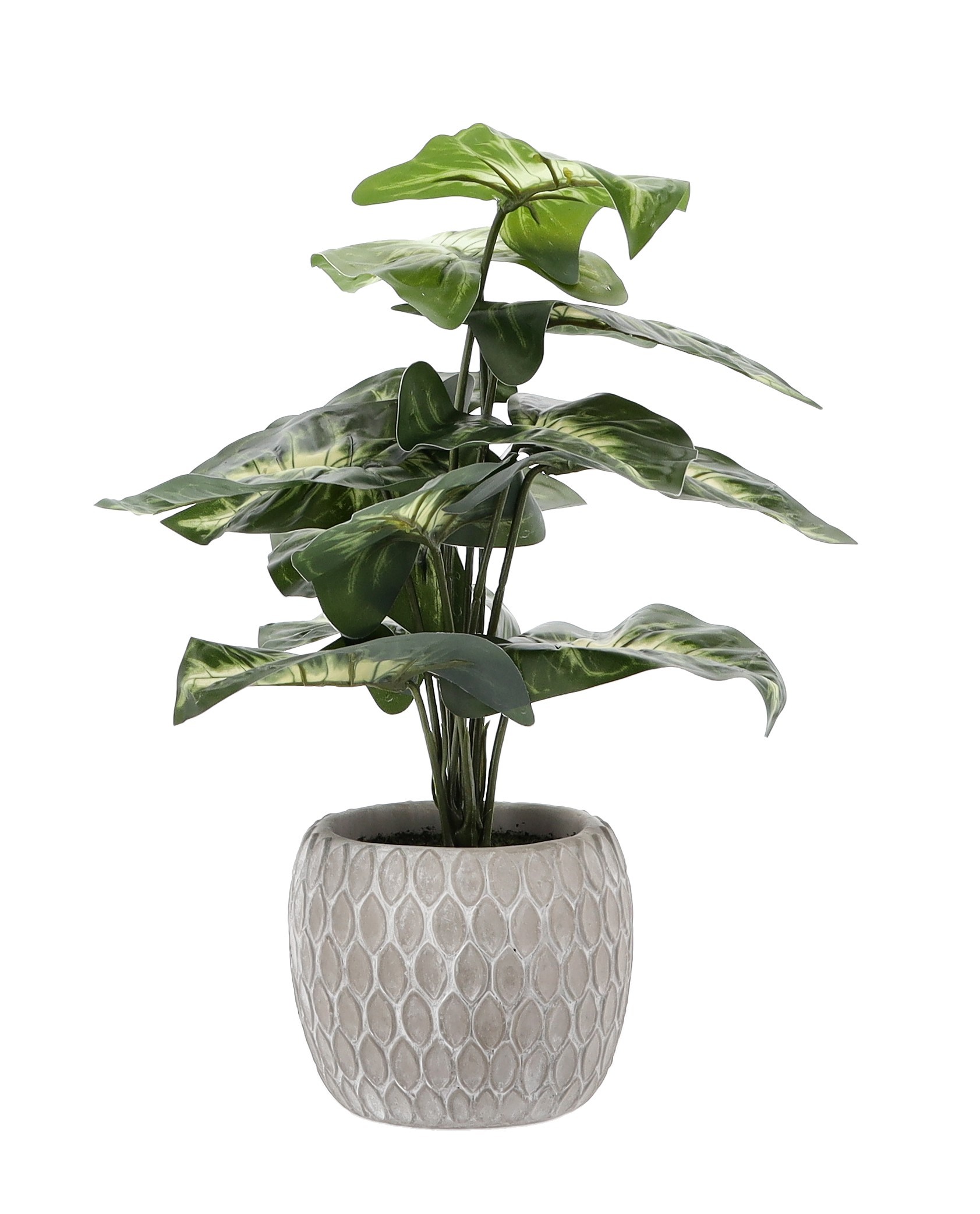 Елегантна та ефектна декорація, яка додасть інтер'єру природного акценту без необхідності догляду. Рослина висотою 36 см вражає великими, реалістично відтвореними листям з декоративним забарвленням 🌱
