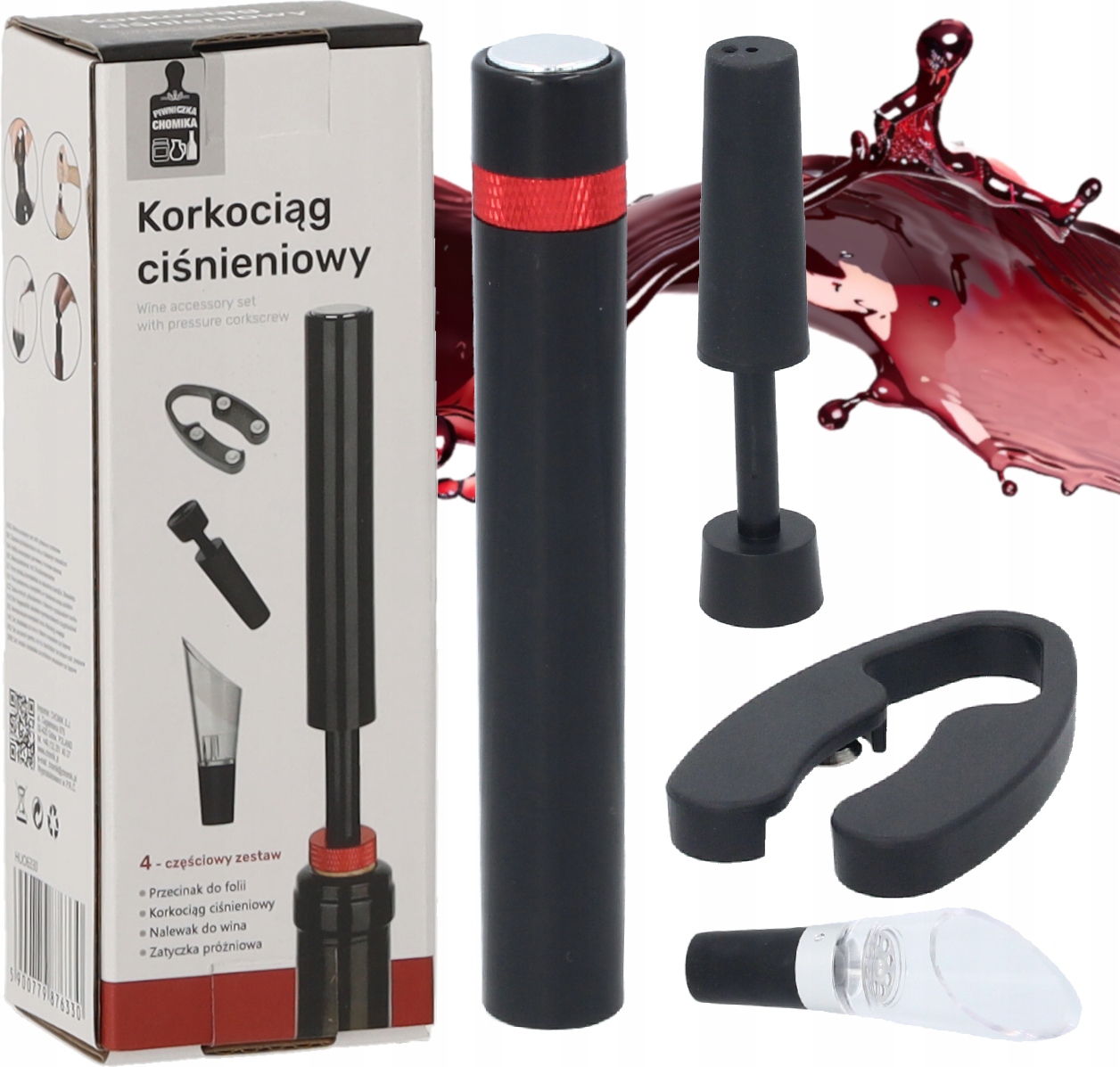 Тисковий відкривач для вина в комплекті з корисними аксесуарами може стати чудовим подарунком.У комплекті: Ножик для фольги Пробка для закриття пляшки Дозатор для вина Прес-відкривач Матеріал: нержавіюча сталь + пластикКолір: чорний