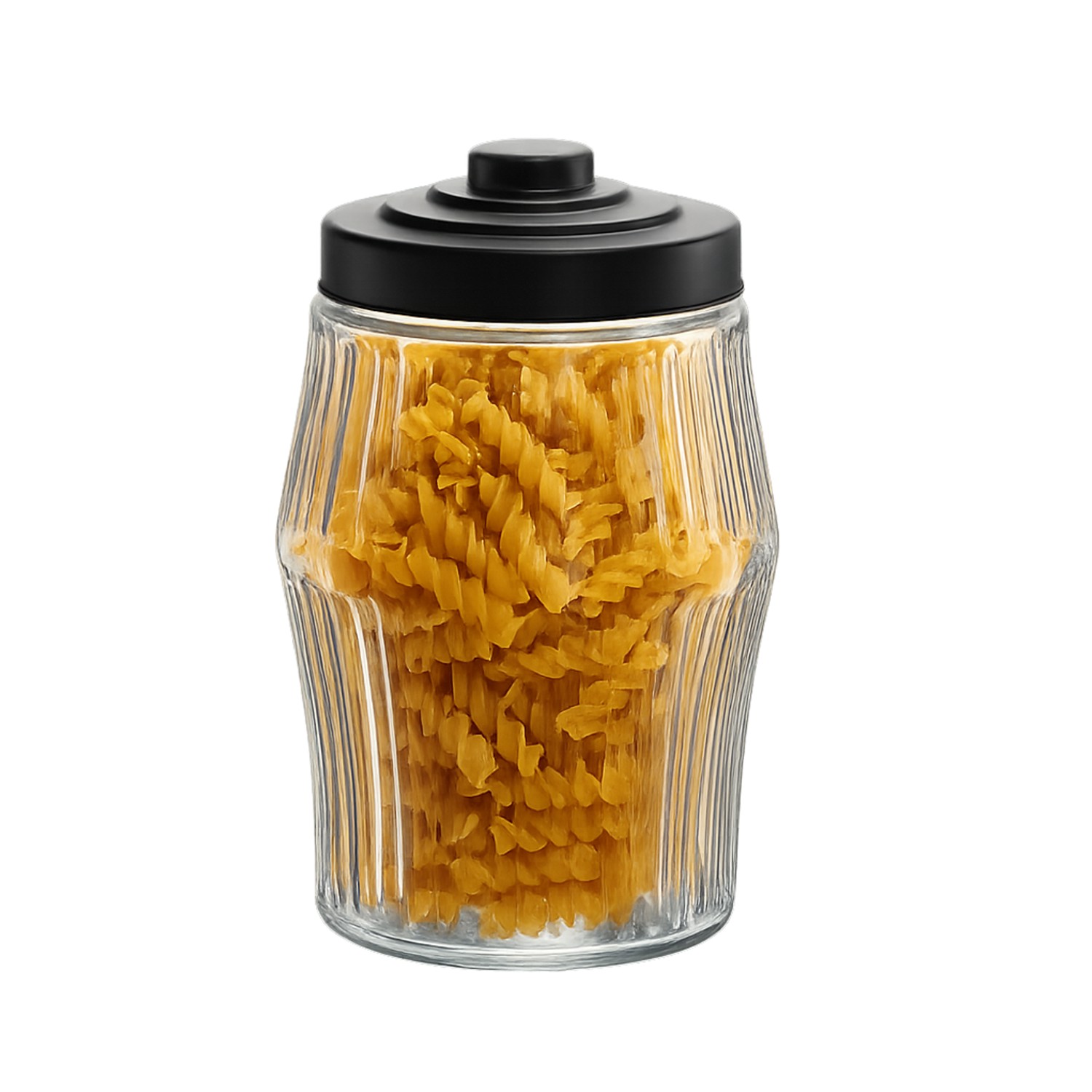 Скляна банка об'ємом 2,8 л круглої форми з елегантними смужками — ідеальний варіант для зберігання меду, джемів, спецій та інших харчових продуктів. Оснащений чорною металевою кришкою, що забезпечує герметичність і свіжість продуктів, які в ньому зберігаються. Його класичний дизайн робить його ідеальним для будь-якої кухні або комори, а також може виконувати декоративну функцію.