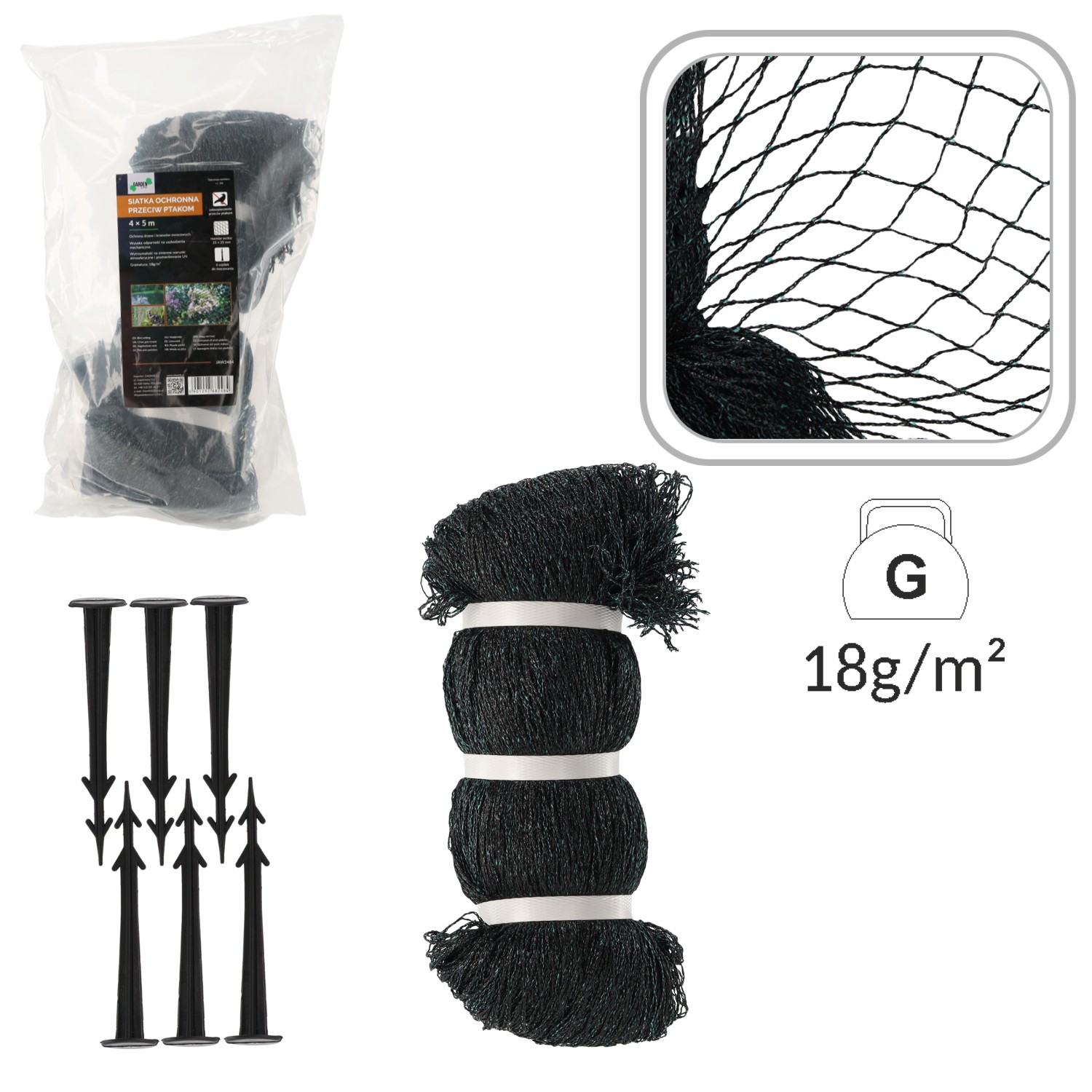 Сітка виготовлена з плетеного поліетилену низької щільності, завдяки чому вона не створює надмірного навантаження на гілки дерев і кущів та є безпечною для ваших культур. • Площа сітки: 18 г/м2.• Розмір вічка: 4x5 см• Сітка стійка до несприятливих погодних умов та УФ-випромінювання • Може використовуватися багаторазово.