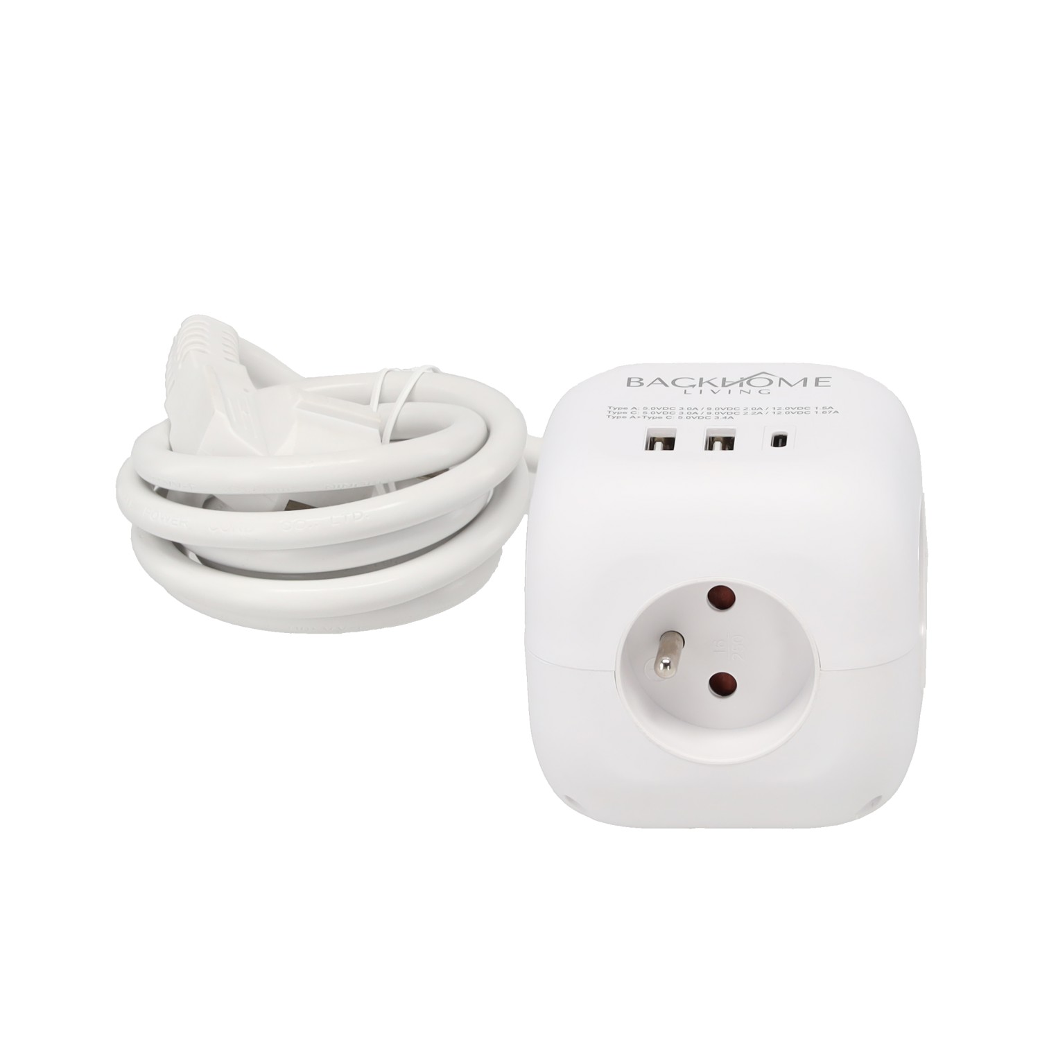 Сучасний подовжувач у формі кубика — ідеальне рішення для тих, хто шукає функціональний та естетичний спосіб організації електроживлення вдома, в офісі або під час подорожей. Оснащений 3 електричними розетками (230 В) та 3 USB-портами, він забезпечує швидку та безпечну зарядку електронних пристроїв, а також зручне живлення побутової техніки та аудіо-відеотехніки. Завдяки компактному дизайну та довжині кабелю 1,5 метра, його легко використовувати в будь-якому приміщенні. Вимикач на корпусі дозволяє економити енергію та повністю контролювати підключені пристрої. У комплекті є двосторонній скотч, що дозволяє надійно закріпити подовжувач у вибраному місці, наприклад, на столі або стіні.
