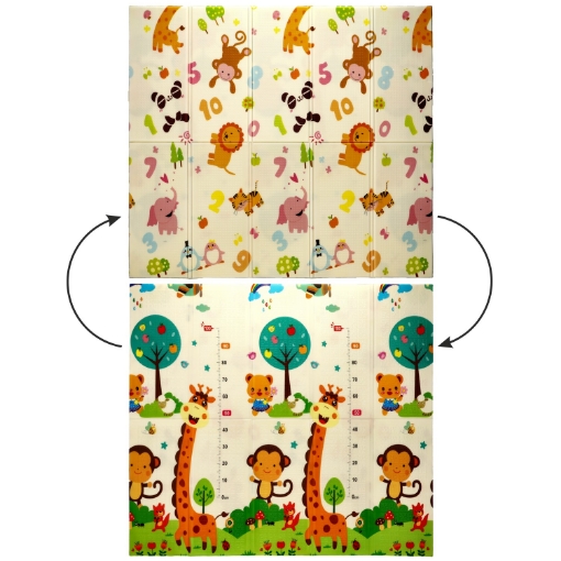 Складаний навчальний килимок для дітей від народження (сертифікат CE 0+) розміром 180x200x1 смМатеріал: пінопласт XPEСпосіб упаковки: складаний килимок, вкладений у тканинну сумку, 1 шт. в коробці. Клієнт також отримує інструкцію з використання та пропозиції ігор.У цьому розмірі є чотири дизайни на вибір.