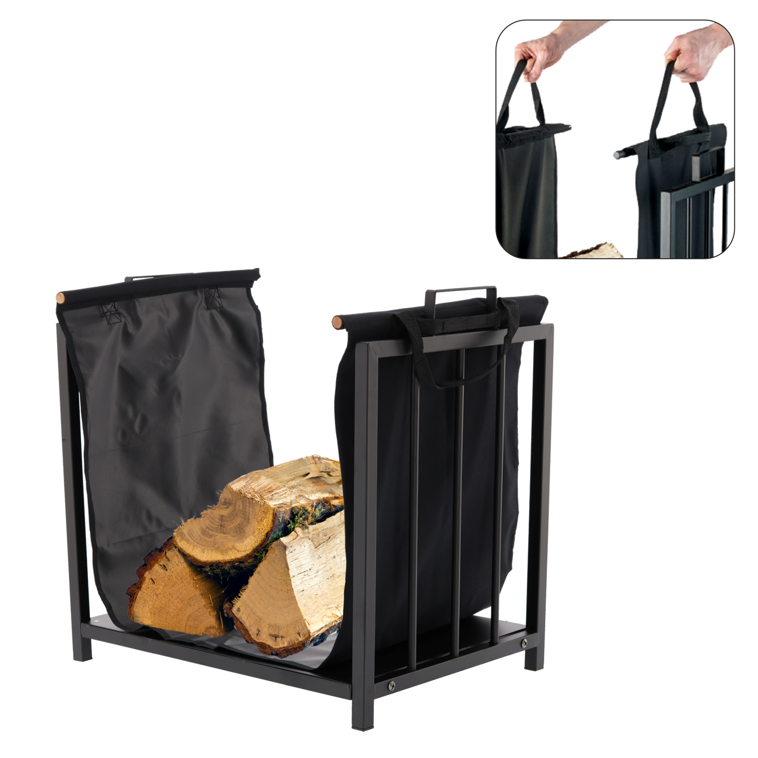 Підтримуйте порядок біля каміна за допомогою елегантного та міцного набору – металевого підставки для дров з переносною сумкою. Це поєднання стилю, функціональності та зручності, яке полегшує зберігання та перенесення палива. Завдяки стабільній конструкції та практичній сумці ви завжди можете мати дрова під рукою – чисто, акуратно та без зусиль.