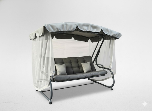 Насолоджуйтесь відпочинком на свіжому повітрі без настирливих комах! Ця елегантна садова гойдалка з москітною сіткою — ідеальне місце для післяобіднього сну, читання книги або спокійного вечора в саду — комфортно і без компромісів.