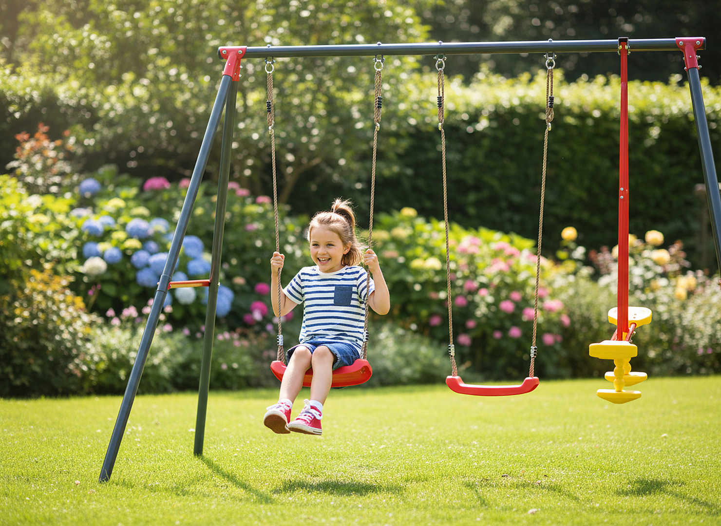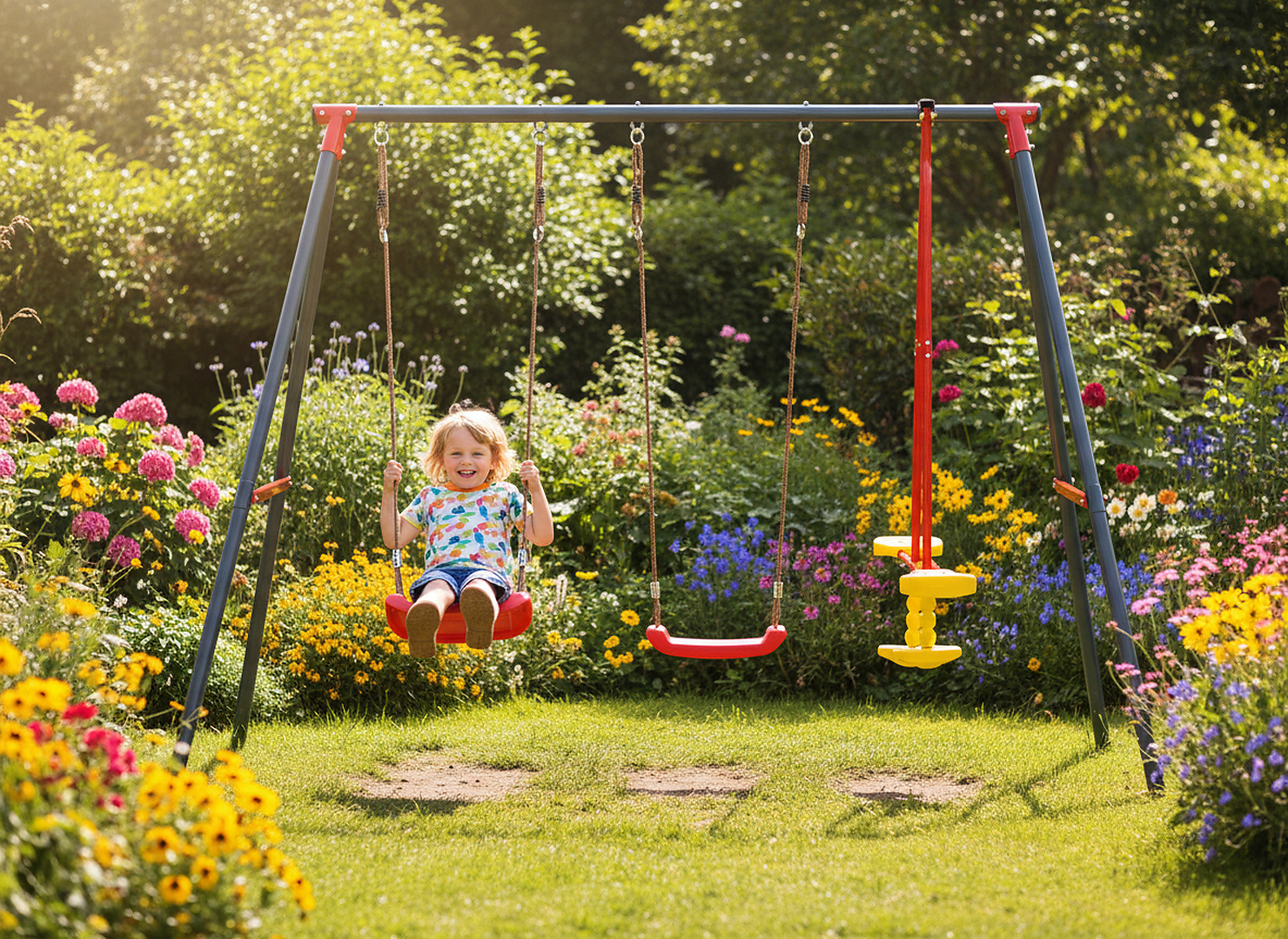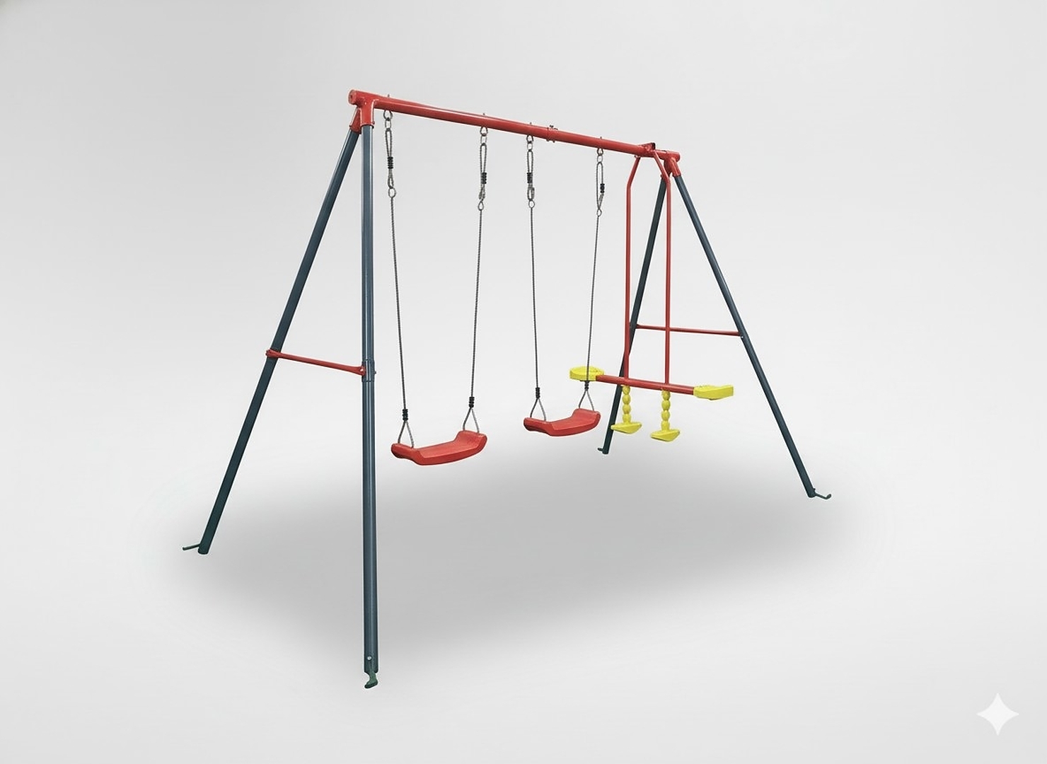 З металевим каркасом, яскравими кольорами сидінь і функцією балансиру, ця гойдалка - не просто меблі, а центр садової розваги та відпочинку для всієї родини!