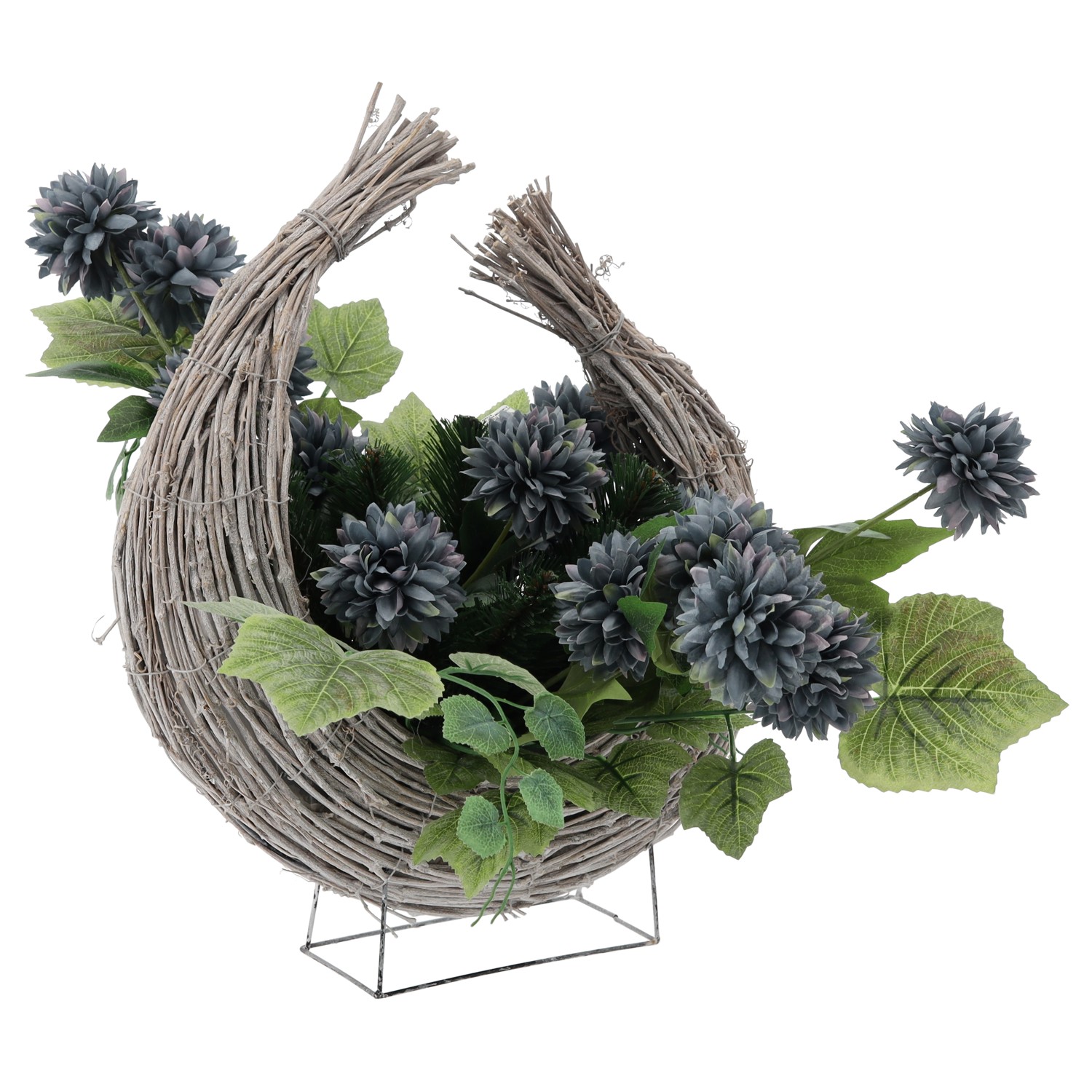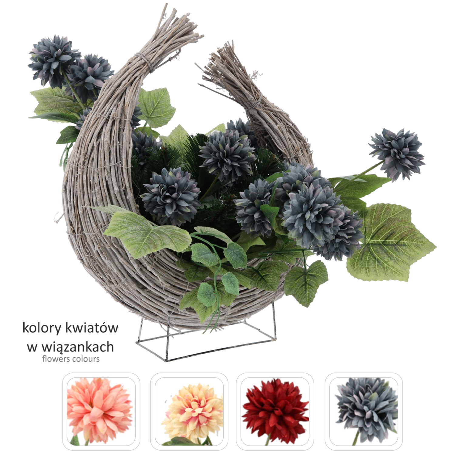 Гробна композиція у формі півмісяця з хризантемами різних кольорів. Ретельно складена, щоб з повагою вшанувати пам'ять близьких і додати місцю пам'яті урочистого характеру.