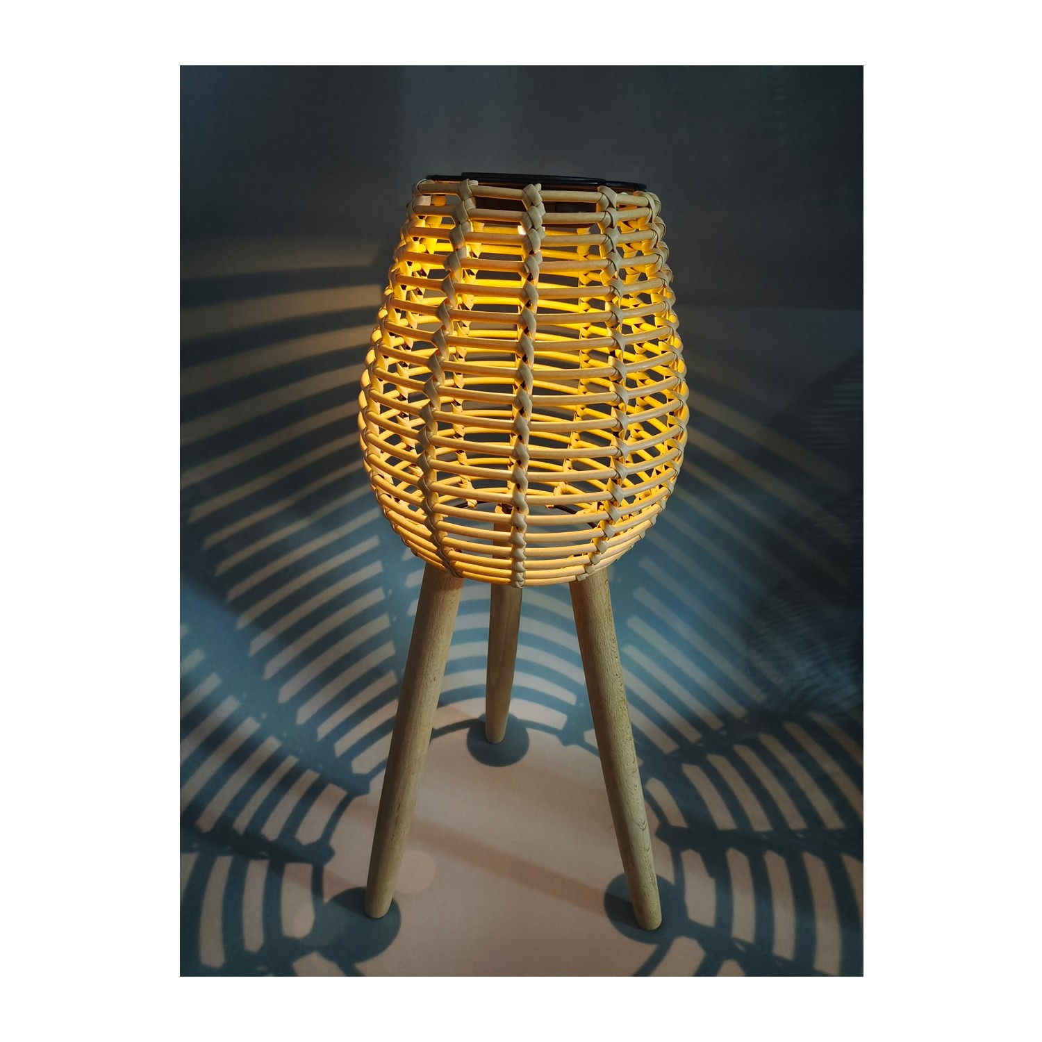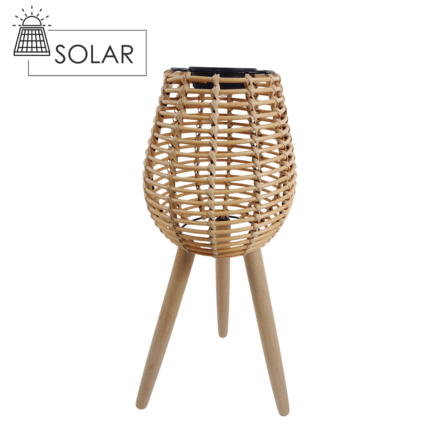 Розміри ліхтаря: ширина 20 см, висота 22/52 смНіжки: дерево, довжина 30 см, діаметр 2,5 смДжерело світла: 1× LED DIP-SMDСонячна панель: полікристалічна, 50×50 ммЖивлення: 1× акумулятор AA 300 мАг