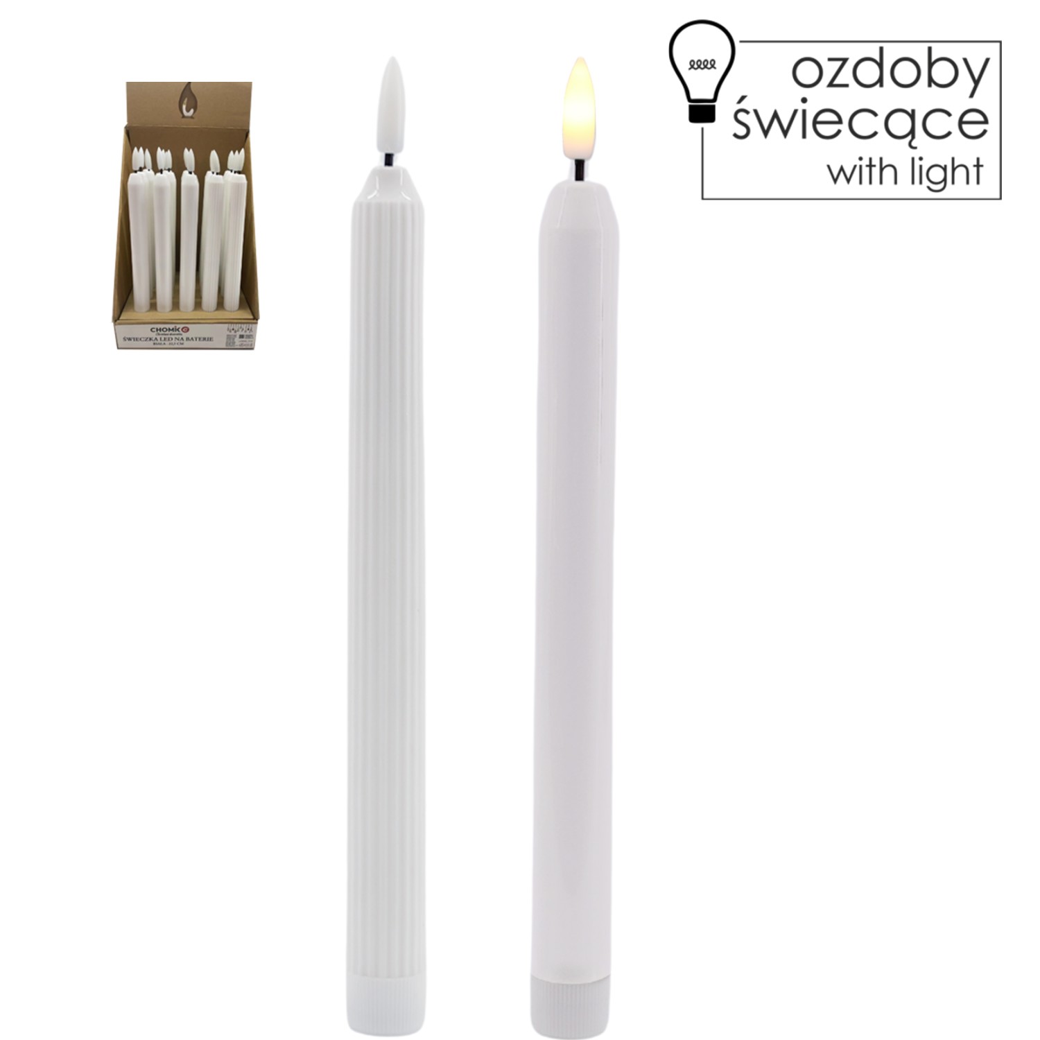 Свічка підлогова світлодіоднаМатеріал: пластикУпаковка: В disp = 8 шт. рифлених + 12 шт. гладкихКолір: теплий білийЖивлення: 2 батарейки AA, не входять до комплектуДодаткові характеристики: IP20