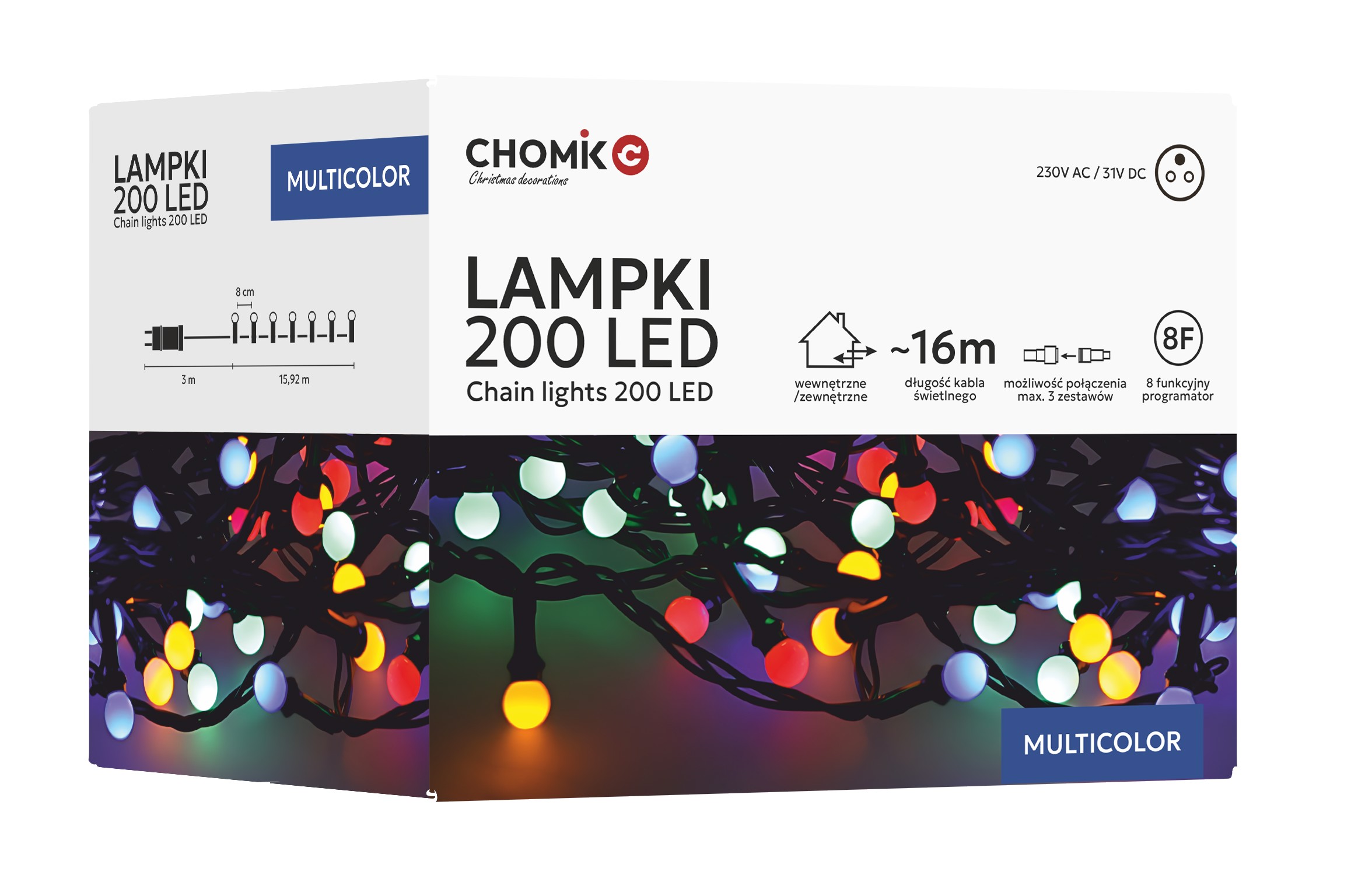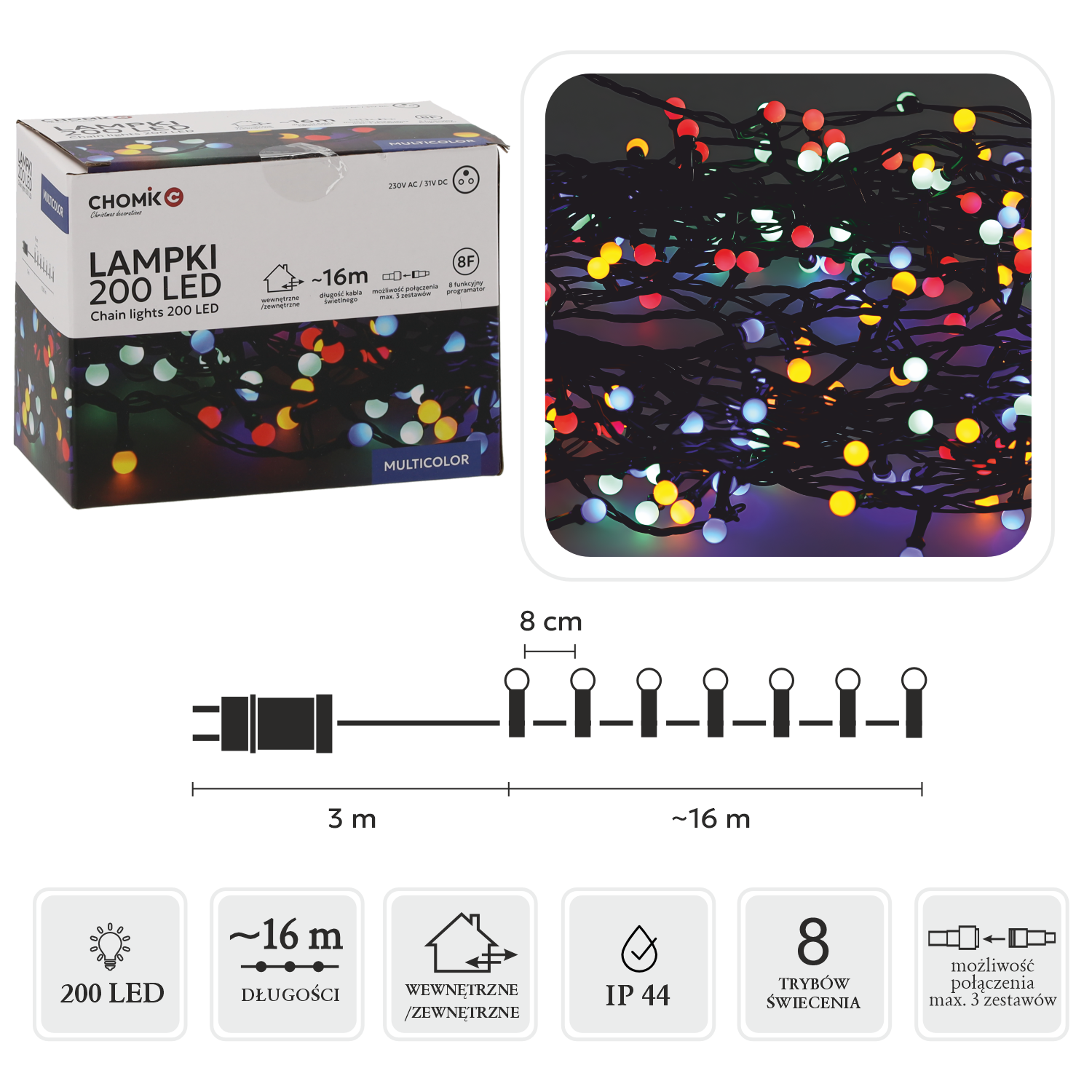 СВІТЛОДІОДНІ ЛАМПИ-КУЛЬКИ 200L МУЛЬТИКОЛЬОРОВІ, ДОВЖИНА 3 + 16 М 🎉🌈