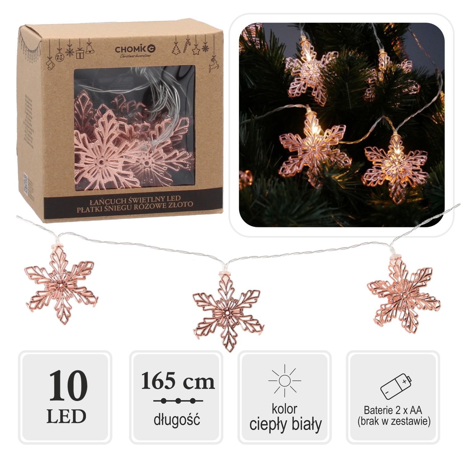 Перетворіть своє приміщення на зимову казку завдяки світлодіодному ланцюгу з мотивом сніжинок рожевого золота! 🌨️ Цей елегантний аксесуар з 10 теплими світлодіодами створить затишну атмосферу та святковий шарм у будь-якій кімнаті.