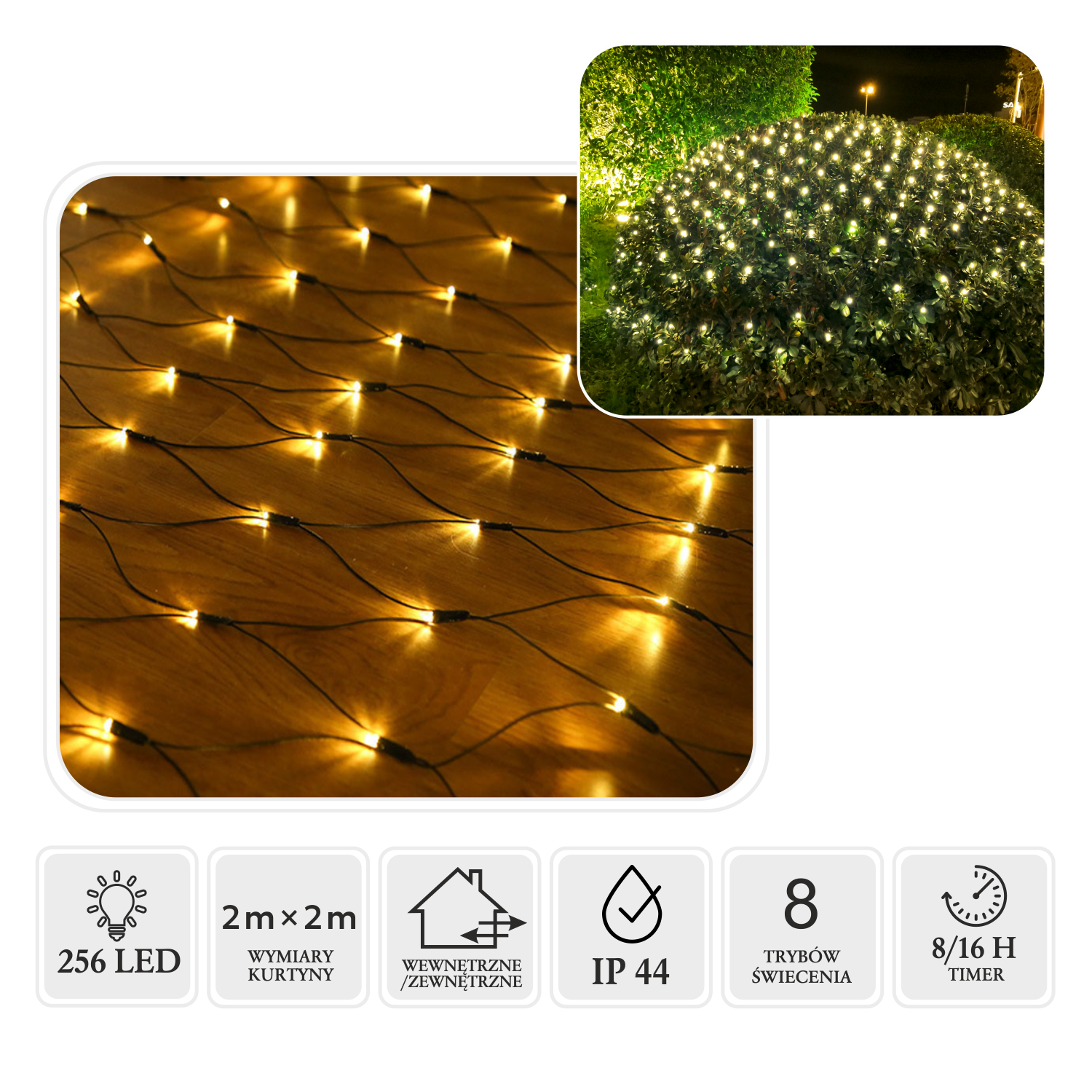 Освітліть свій простір затишним світлом! Ця ефектна світлова завіса LED у вигляді сітки розміром 2 x 2 м додасть чарівності будь-якому місцю – як вдома, так і на вулиці ✨🎄