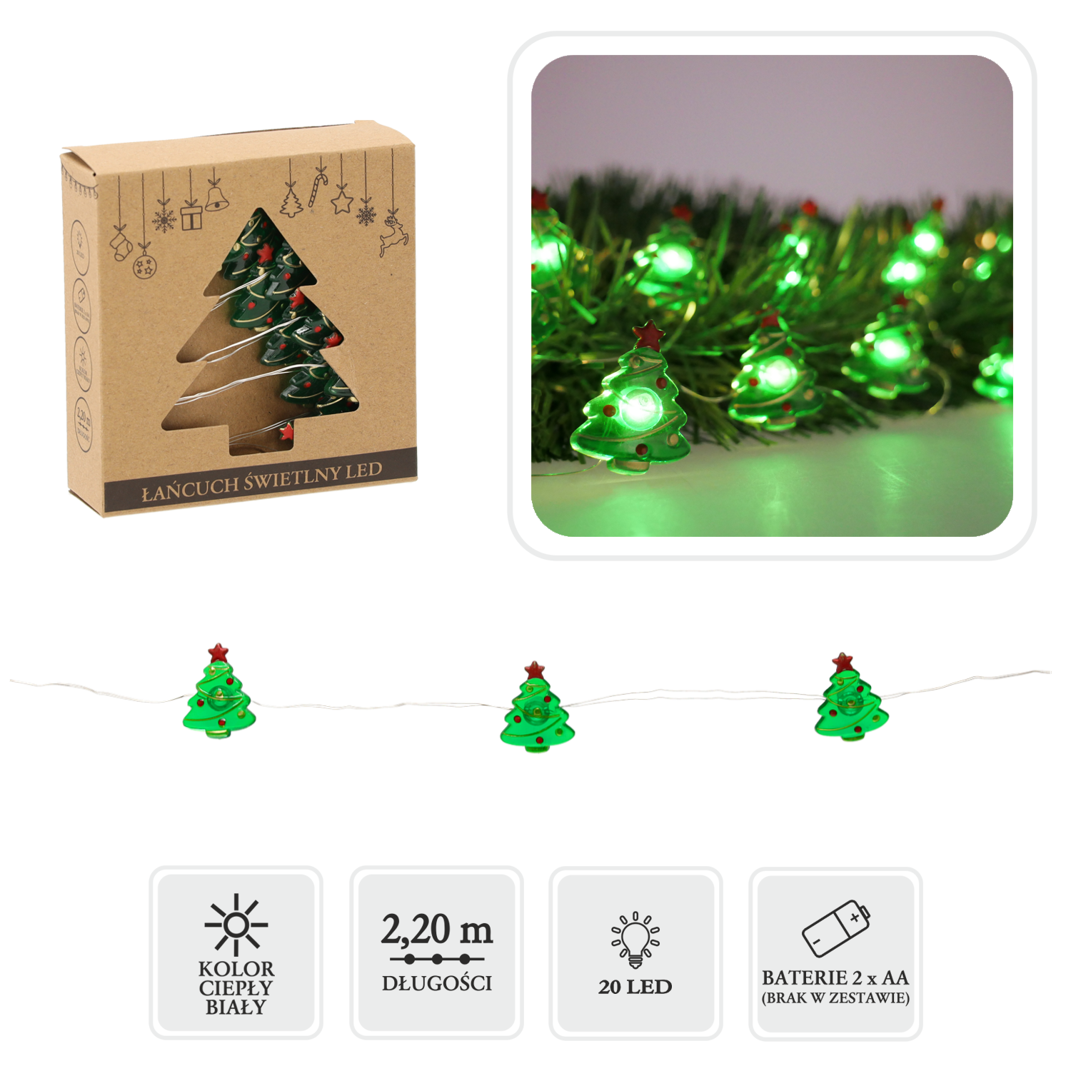Створіть різдвяну атмосферу у своєму домі завдяки чарівній світлодіодній гірлянді з ялинками! 🎄 20 світлодіодних лампочок теплого білого кольору освітлять ваше приміщення, створюючи затишну і святкову атмосферу. Ідеально підходить для підвішування на ялинці, полиці, каміні або у вікні.