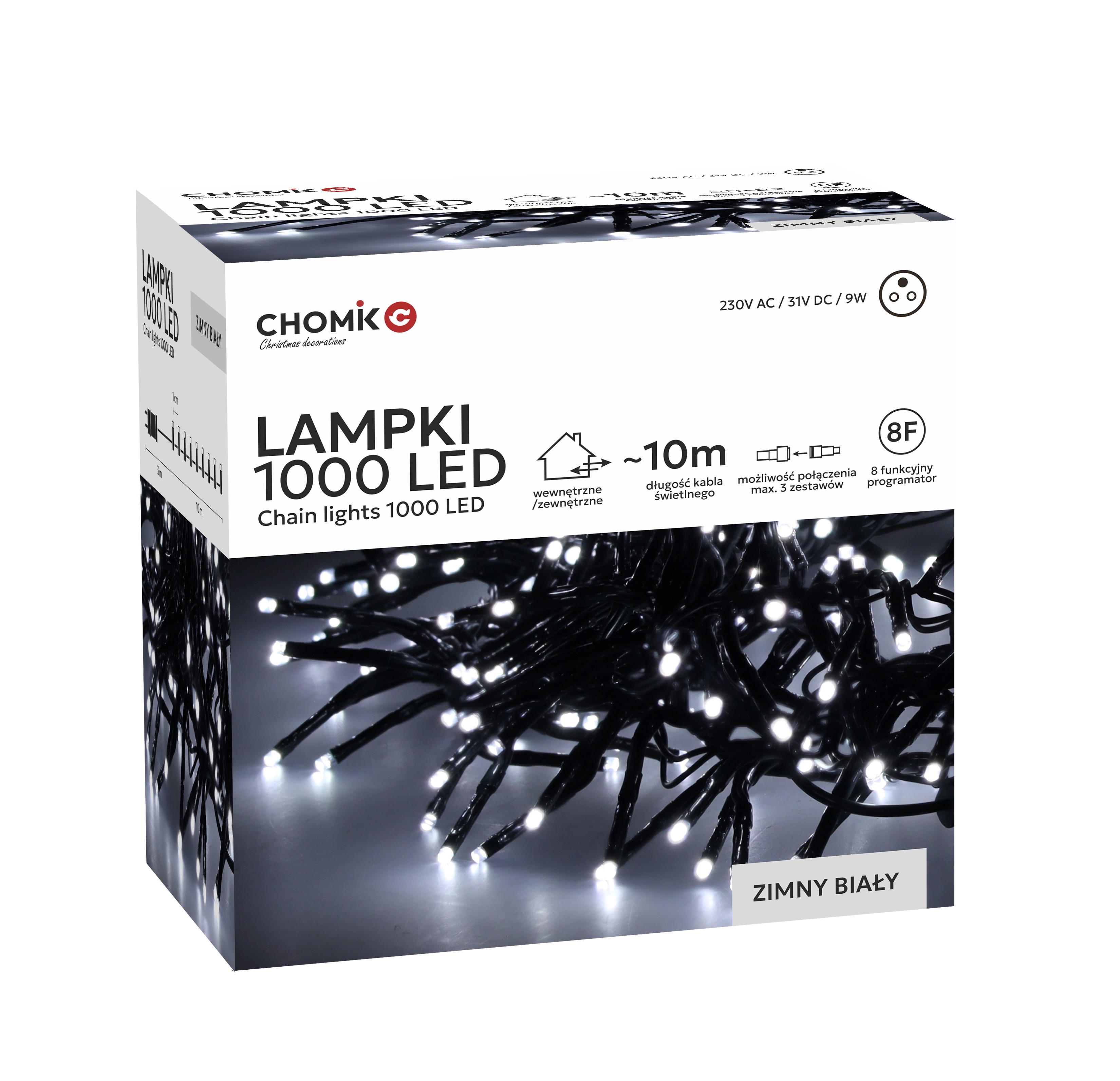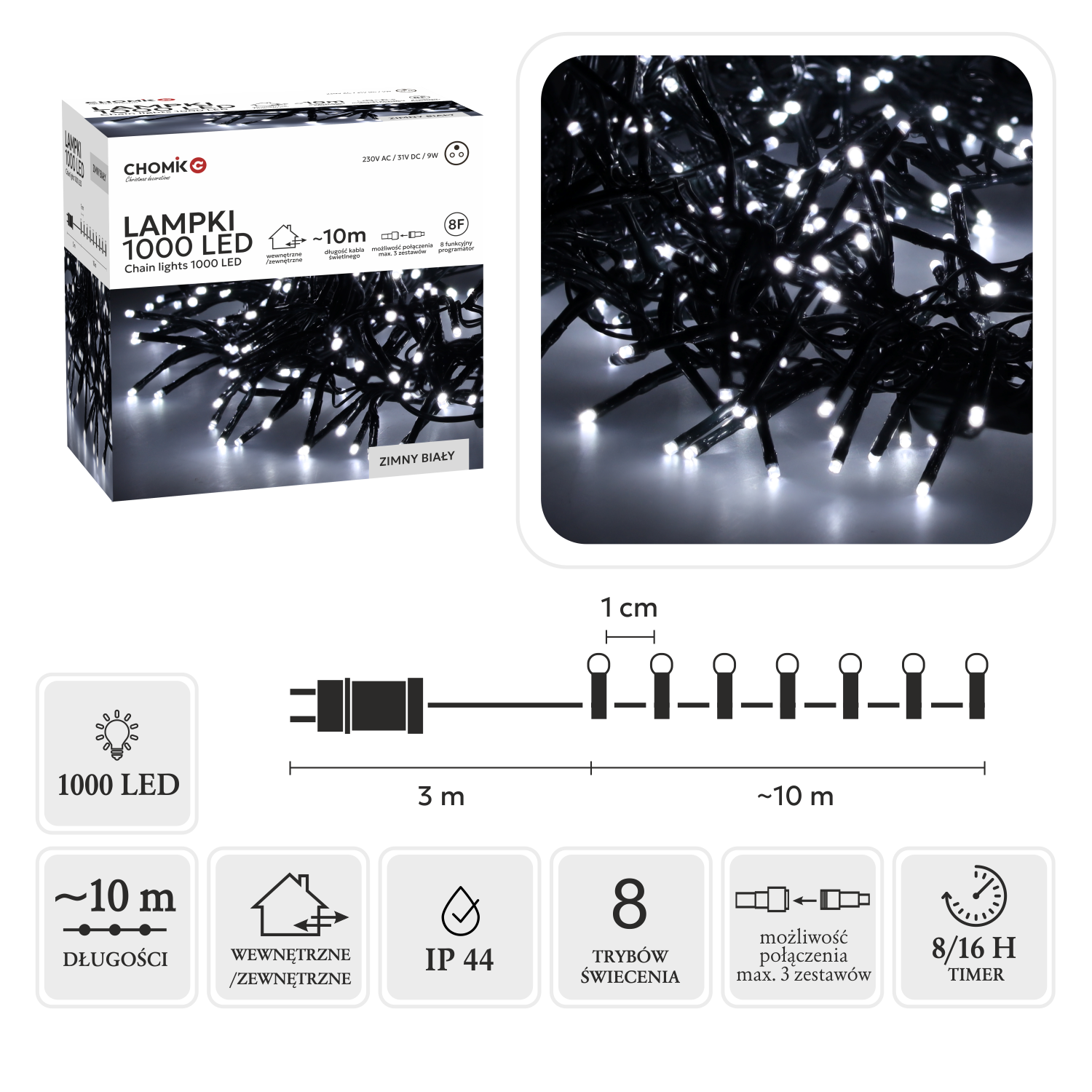 Підготуйте свій будинок до магії свят з LED-лампочками CLUSTER 1000L холодного білого кольору! ❄️ Ці ефектні, щільно розташовані лампочки створюють неймовірно інтенсивне сяйво, яке ідеально підкреслить святкові прикраси як всередині, так і зовні вашого будинку 🎄.