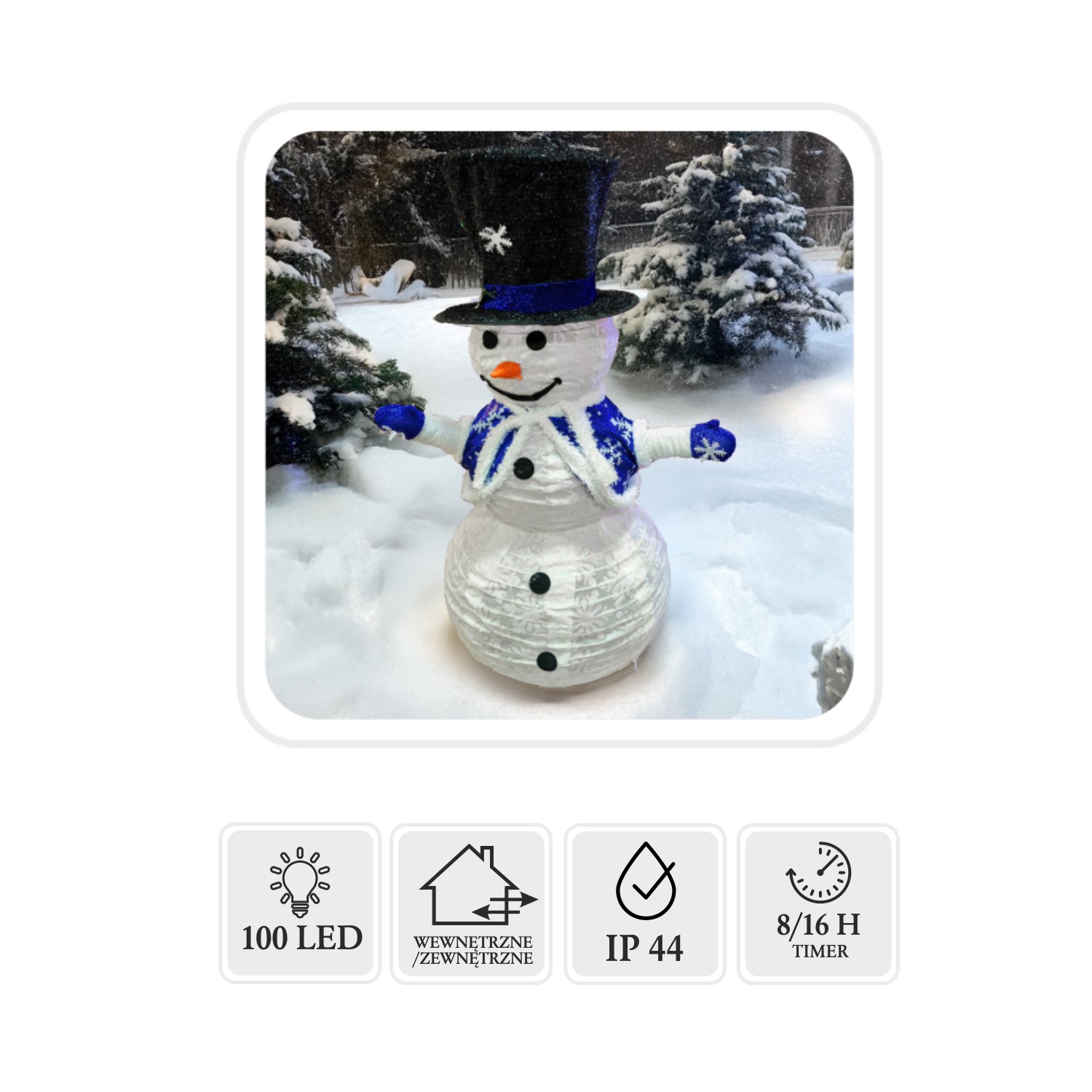 Внесіть у свій будинок або сад неповторну атмосферу свята завдяки класичній прикрасі у вигляді сніговика LED! ❄️ Цей чарівний сніговик висотою 1,2 метра оснащений 100 теплими світлодіодами, які створюють чарівну і затишну атмосферу – ідеальну для зимових вечорів.