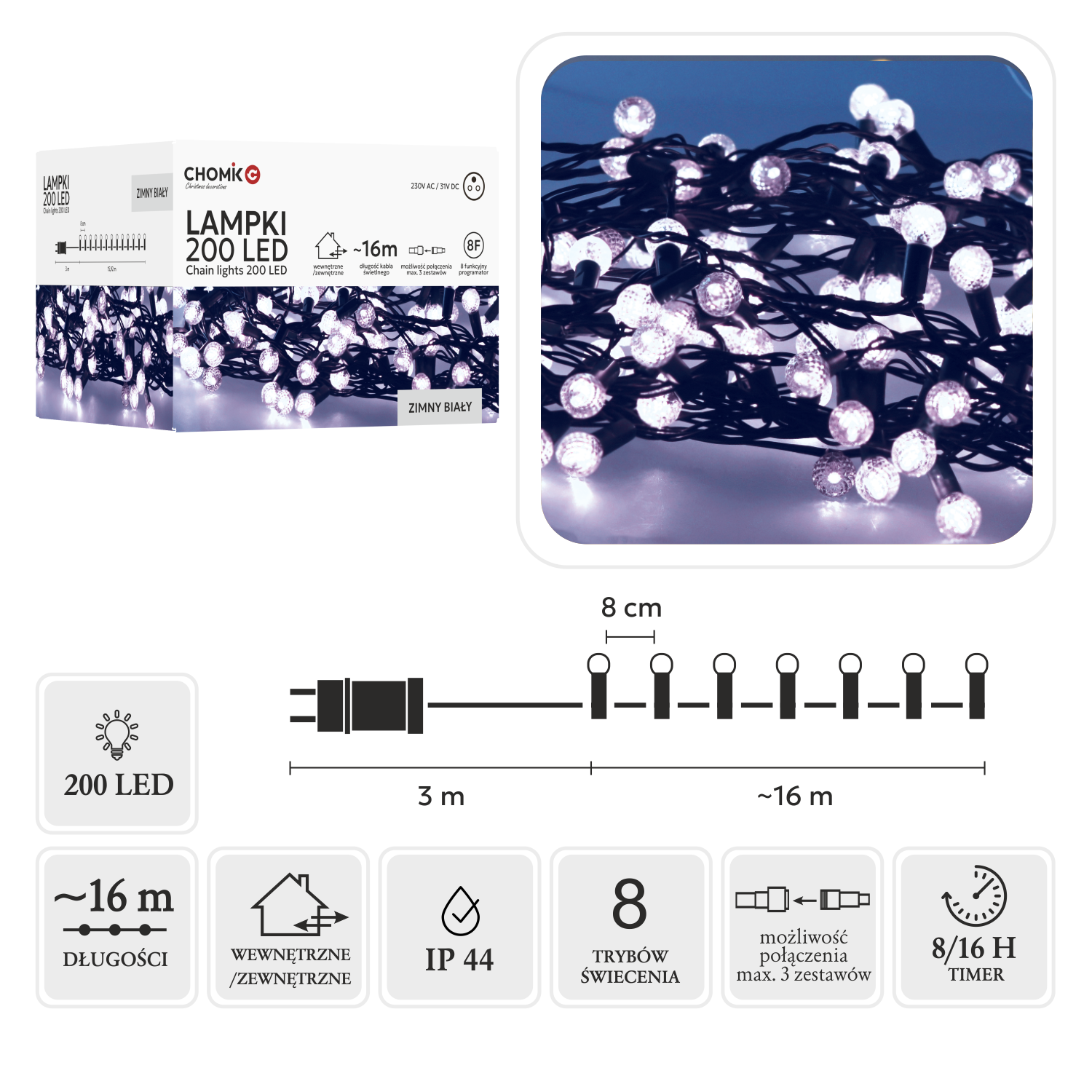 СВІТЛОДІОДНІ ЛАМПИ CHERRY BALL 200L ХОЛОДНИЙ БІЛИЙ, ДОВЖИНА 3 + 16 М ❄️