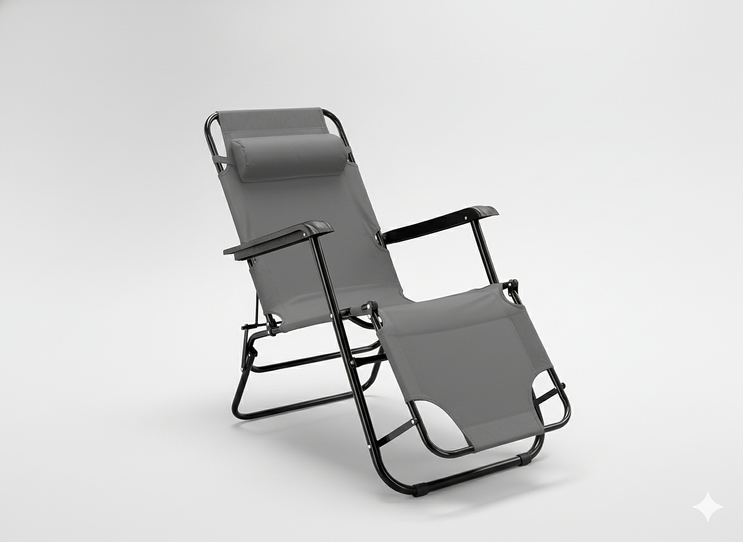 СКЛАДНИЙ САДОВИЙ ШЕЗЛОНГ З ПІДГОЛОВНИКОМ СІРИЙ 🌤️