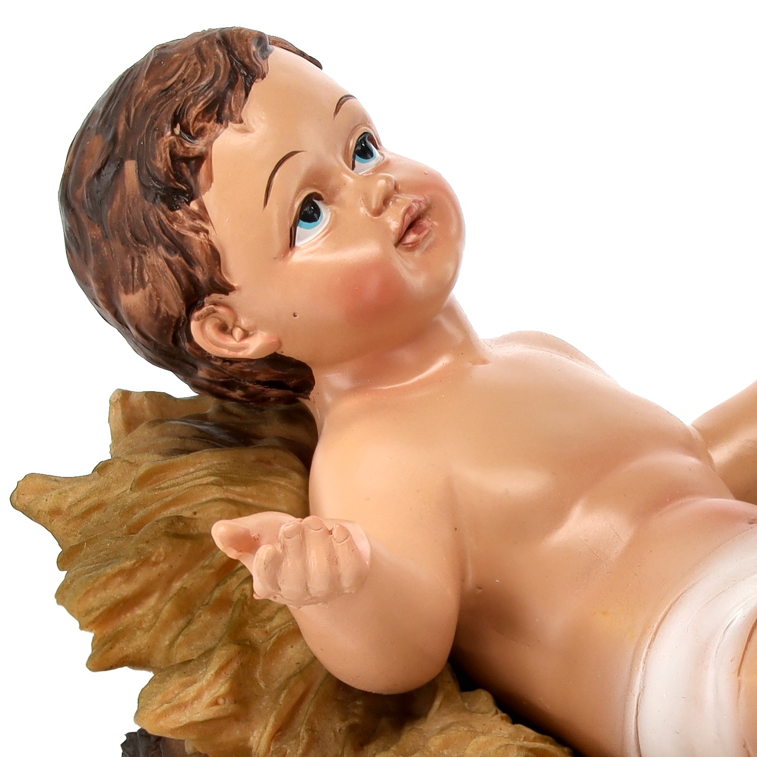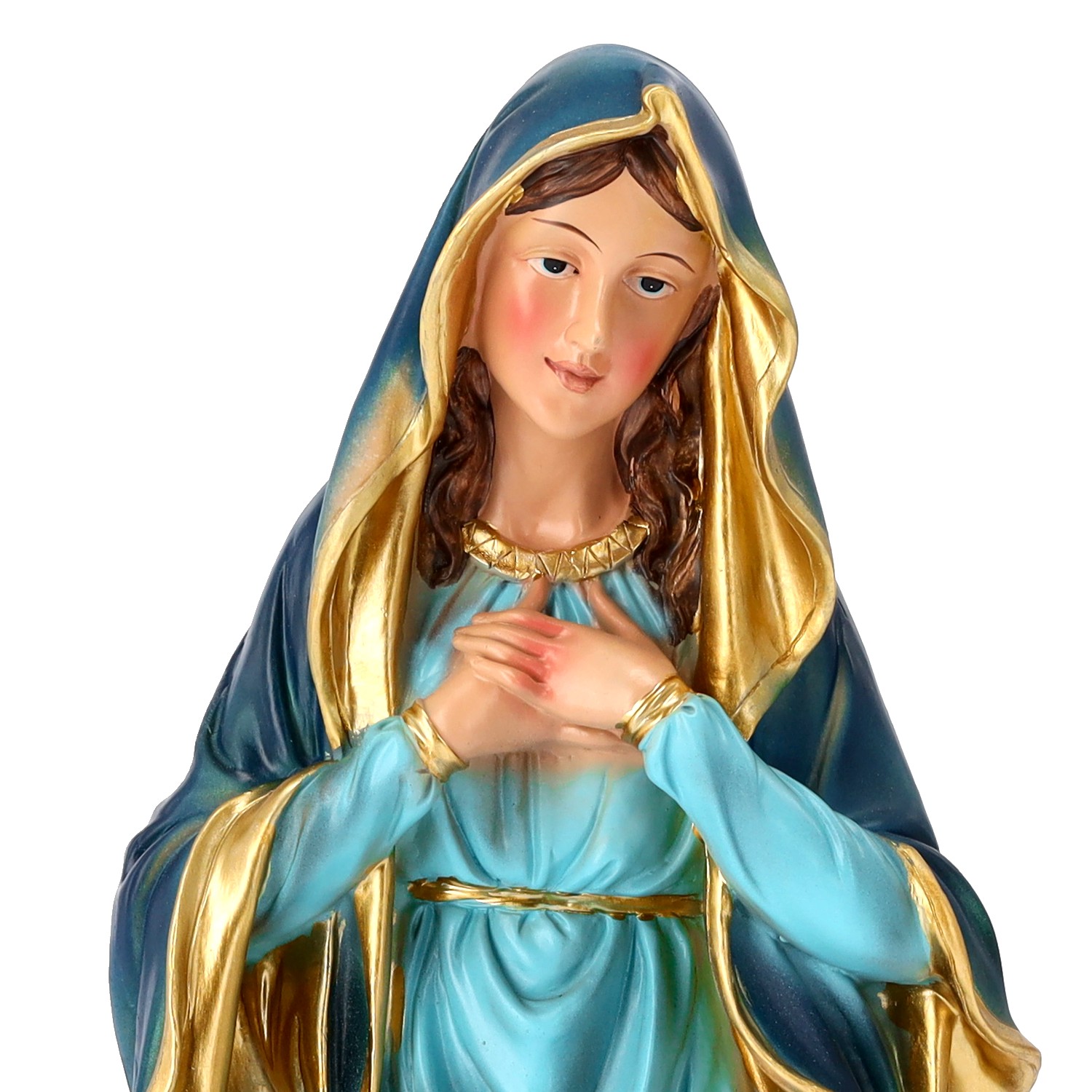 ✨ Кожна фігура виготовлена з надзвичайною точністю – від ніжних рис обличчя до реалістичних складок одягу 🎨. Золоті та блакитні акценти надають всьому елегантності та блиску, завдяки чому прикраса прекрасно виглядає як у церковних вертепах, так і в домашніх інтер'єрах 🕯️💫.