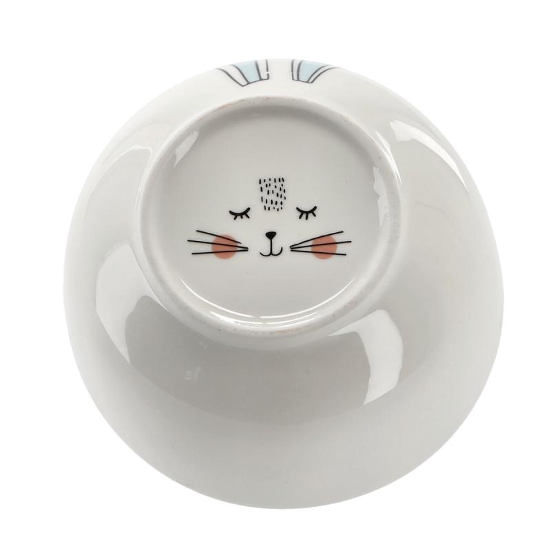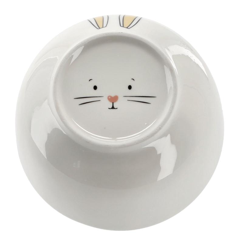 ПОРЦЕЛЯНОВА БАЧКА 480 МЛ ВУХА КРОЛИКА З ОБЛИЧЧЯМ НА ДНІБачка виготовлена з високоякісної порцеляни. Чашка прикрашена чарівним мотивом зайчика. Ця мила прикраса надає чашці неповторного характеру і робить її використання приємним досвідом. Це ідеальний вибір для любителів Великодня і для всіх, хто цінує оригінальний дизайн і виняткові деталі. Міцне виконання з порцеляни гарантує довговічність і легкість у догляді.