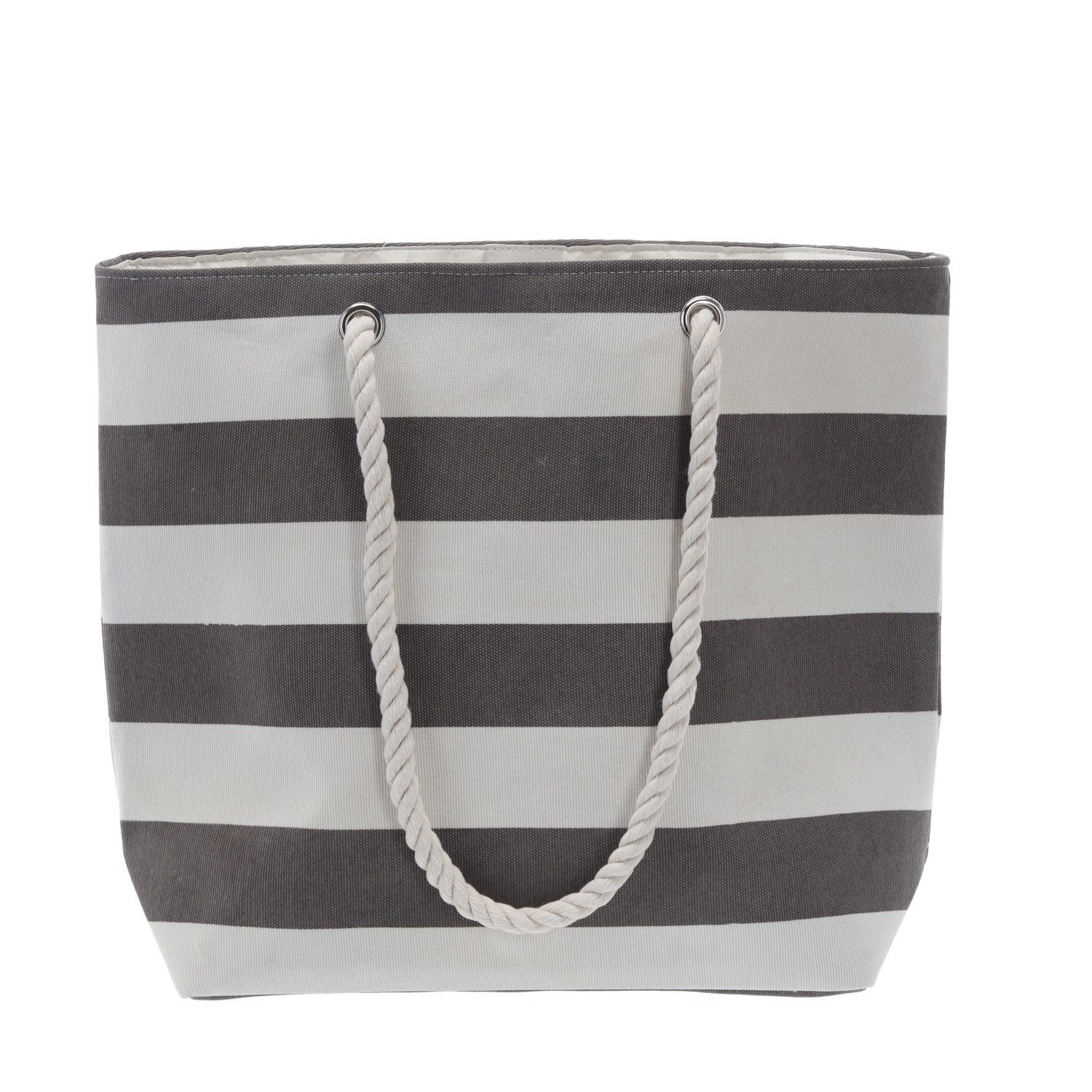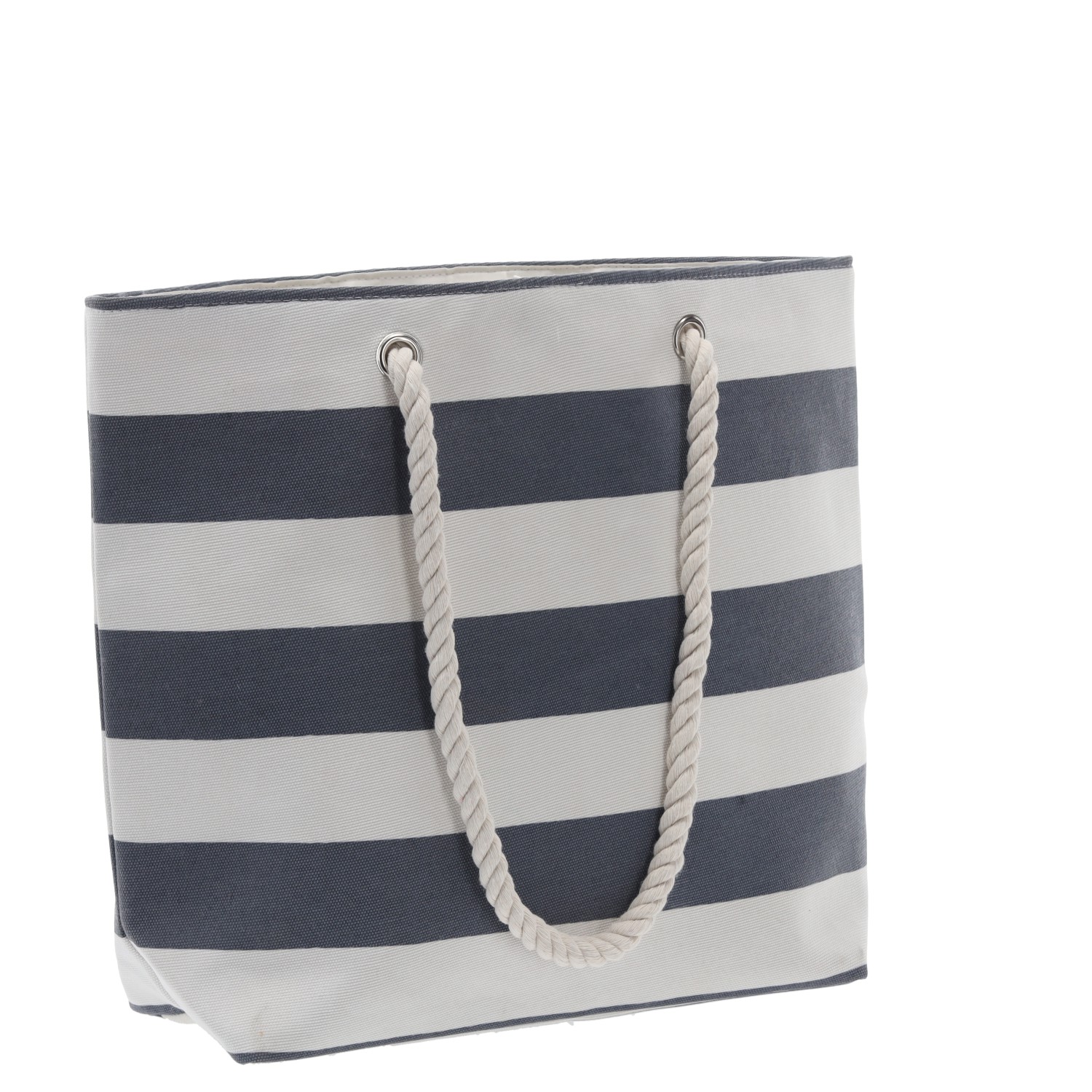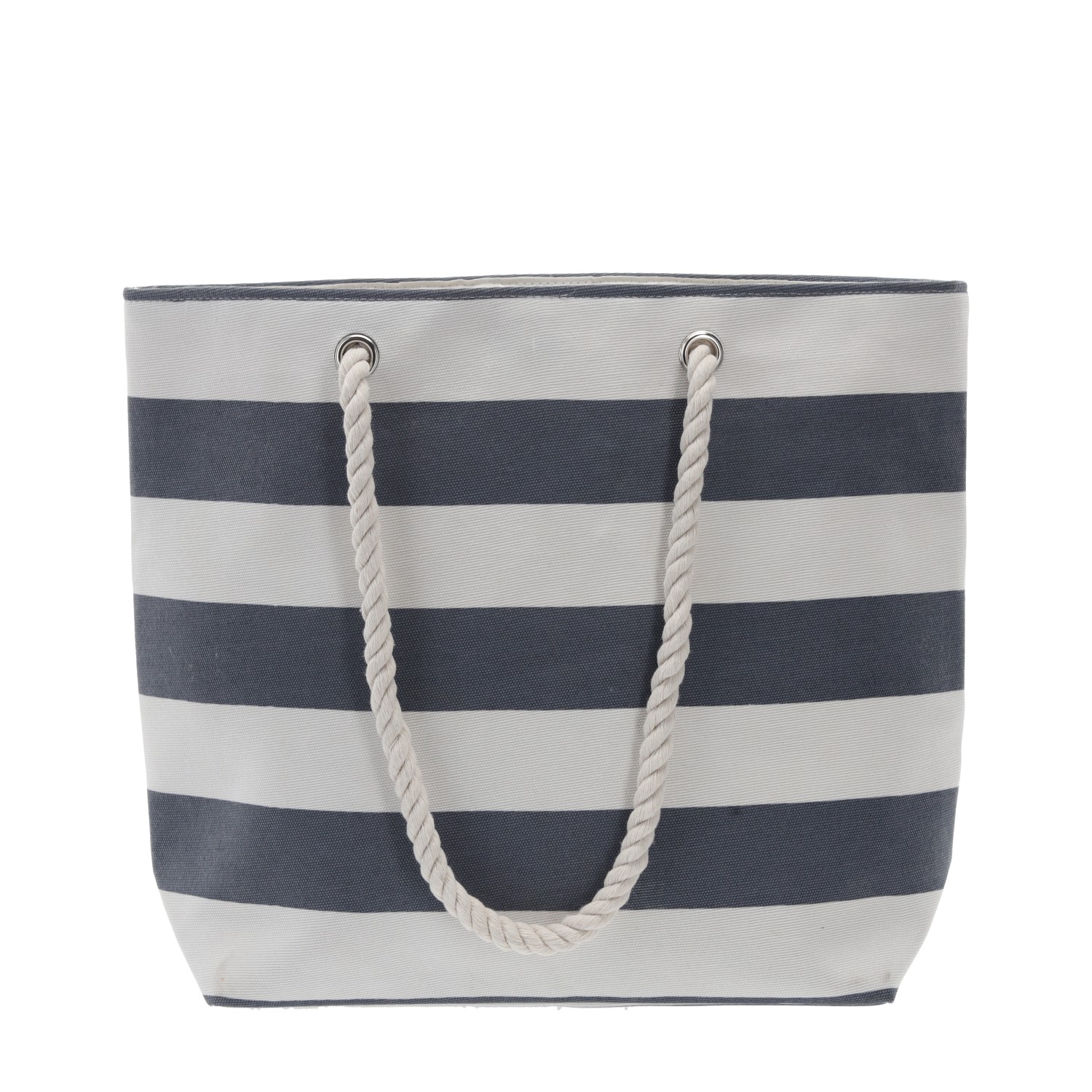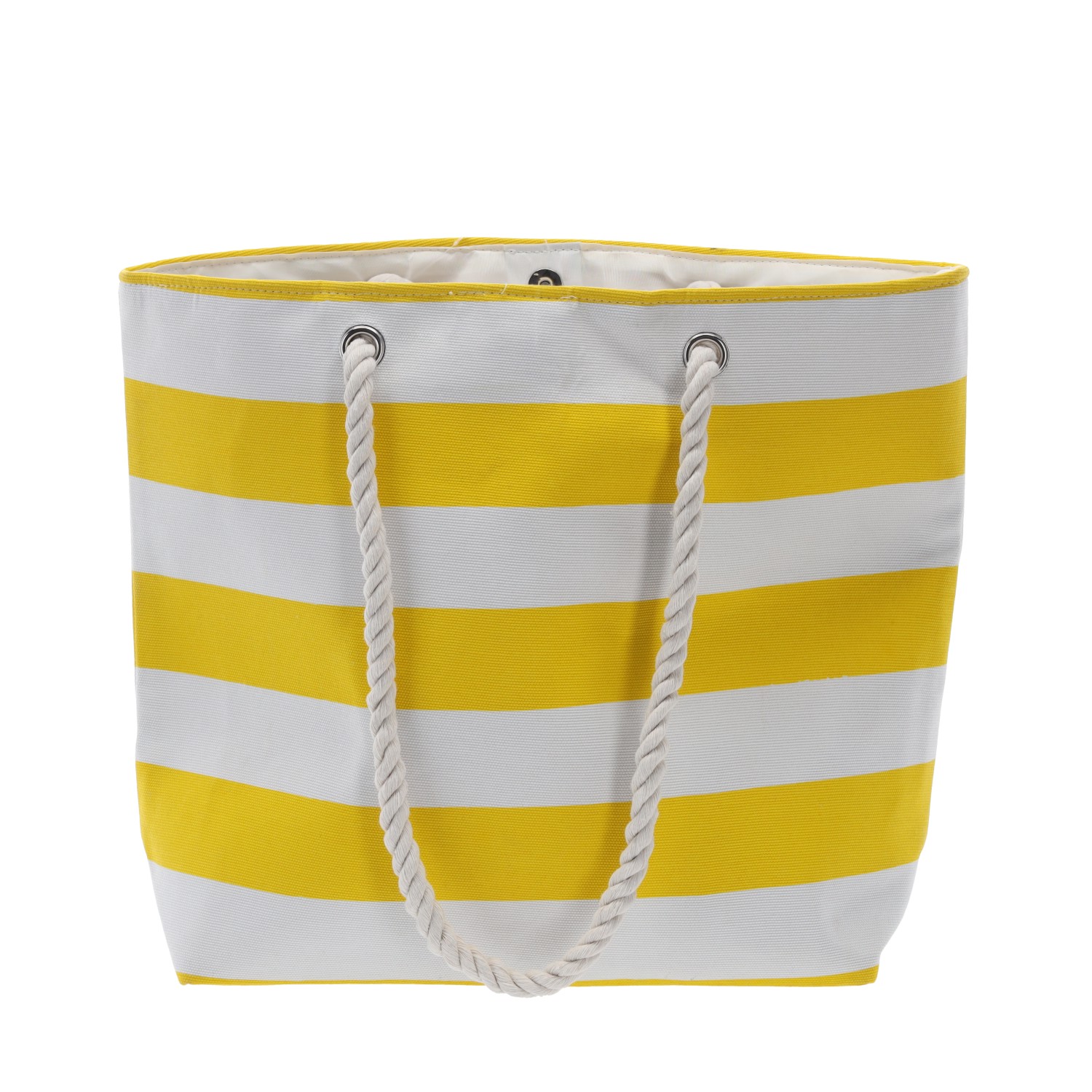 Стильна пляжна сумка в модних смужках – ідеальний аксесуар для відпустки на морі, озері чи басейні. Поєднує в собі практичність і модний вигляд – вміщує всі необхідні речі, а завдяки зручним ручкам чудово підходить для щоденного використання.