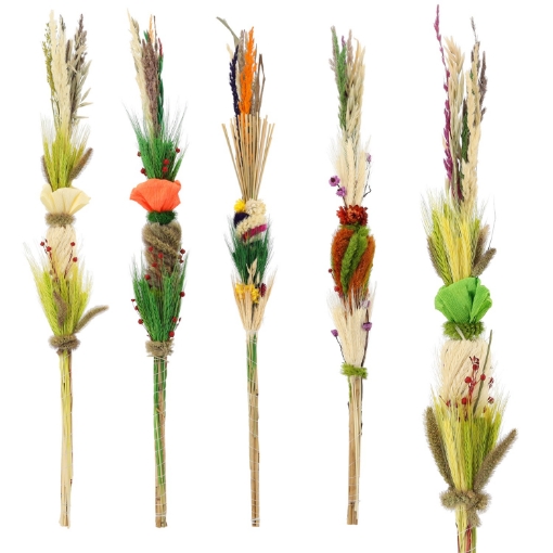 Унікальний символ Воскресіння Господнього. Пальма символізує воскресіння, безсмертя душі, страждання та спокуту. Великодня пальма виготовлена з традиційних матеріалів: сушеної трави, вівса, зерна, очерету.Висота: 70 смЦіна за 1 шт.