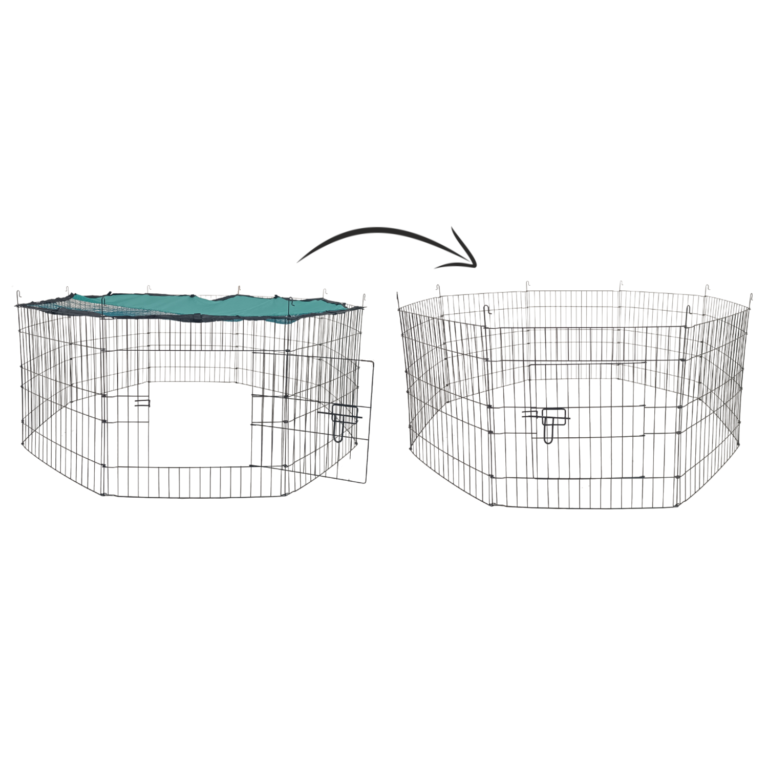 Виготовлений з високоякісної сталі, манеж є міцним, стабільним і стійким до атмосферних умов. Забезпечує захист від втечі та безпеку вашого вихованця.