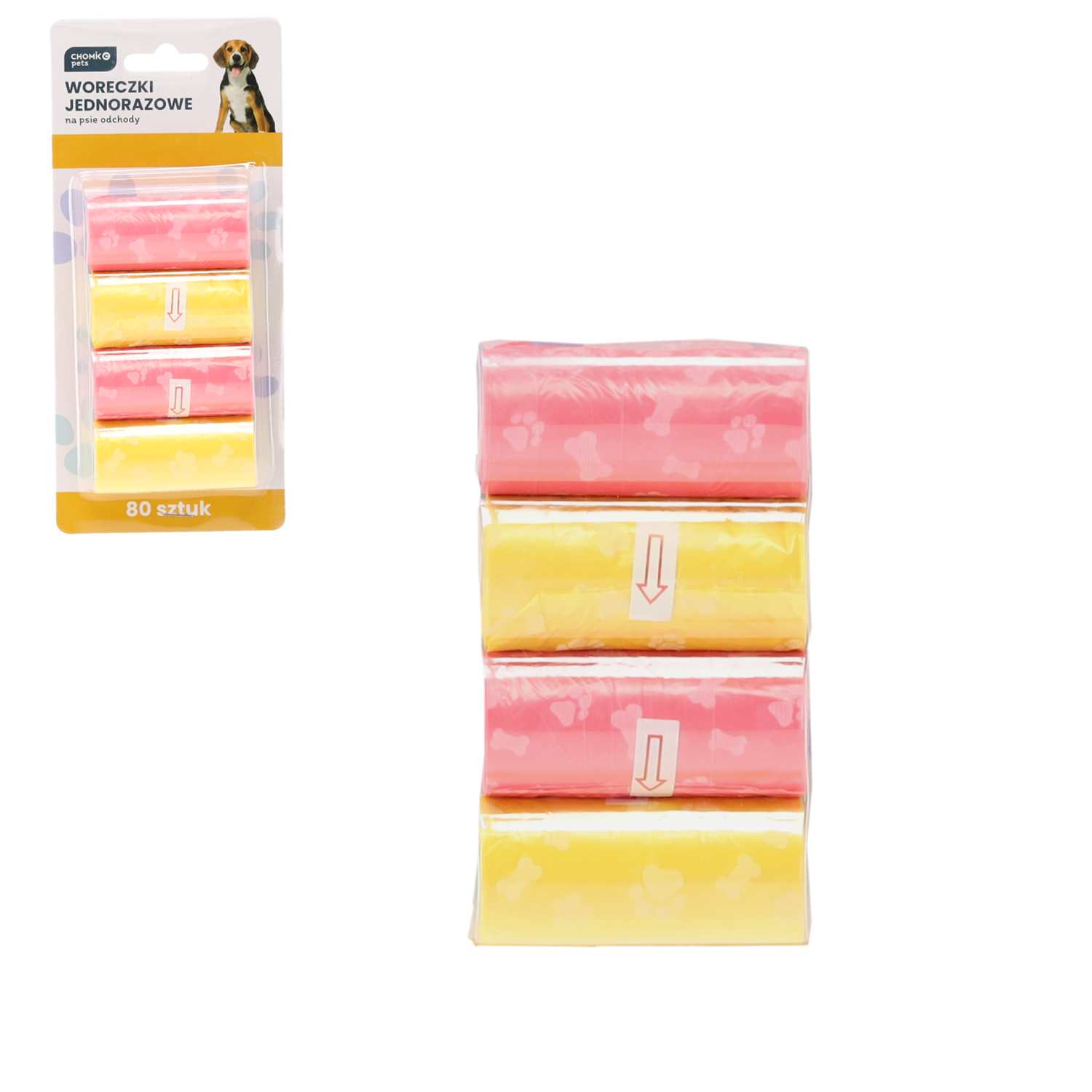 Підтримуйте чистоту під час прогулянок зі своїм улюбленцем завдяки практичним пакетам для собачих екскрементів! Упаковка містить 80 міцних, герметичних пакетів, які полегшать гігієнічне прибирання за вашим собакою.