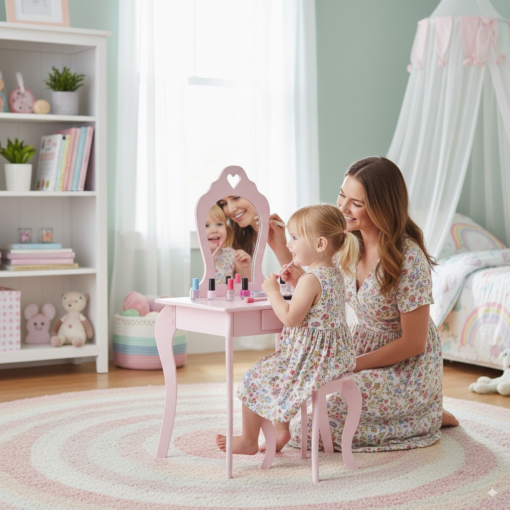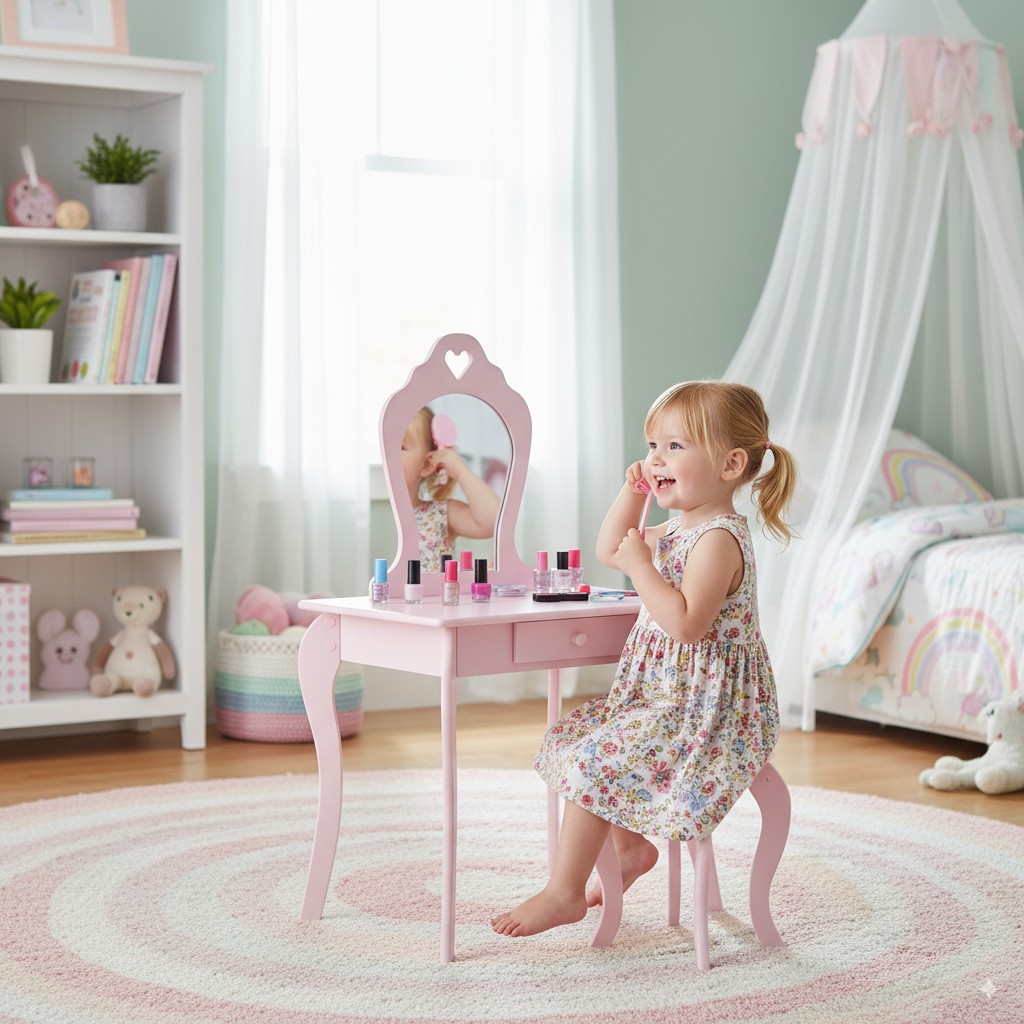 Це не просто меблі, а здійснення мрії кожної дівчинки ✨. Ваша дитина почуватиметься особливою, маючи власний куточок для гри в макіяж або зберігання улюблених прикрас. Завдяки міцному виконанню і безпечних матеріалів ви можете бути впевнені, що туалетний столик прослужить довгий час. Це також гарна прикраса дитячої кімнати, яка додасть їй особливого характеру.