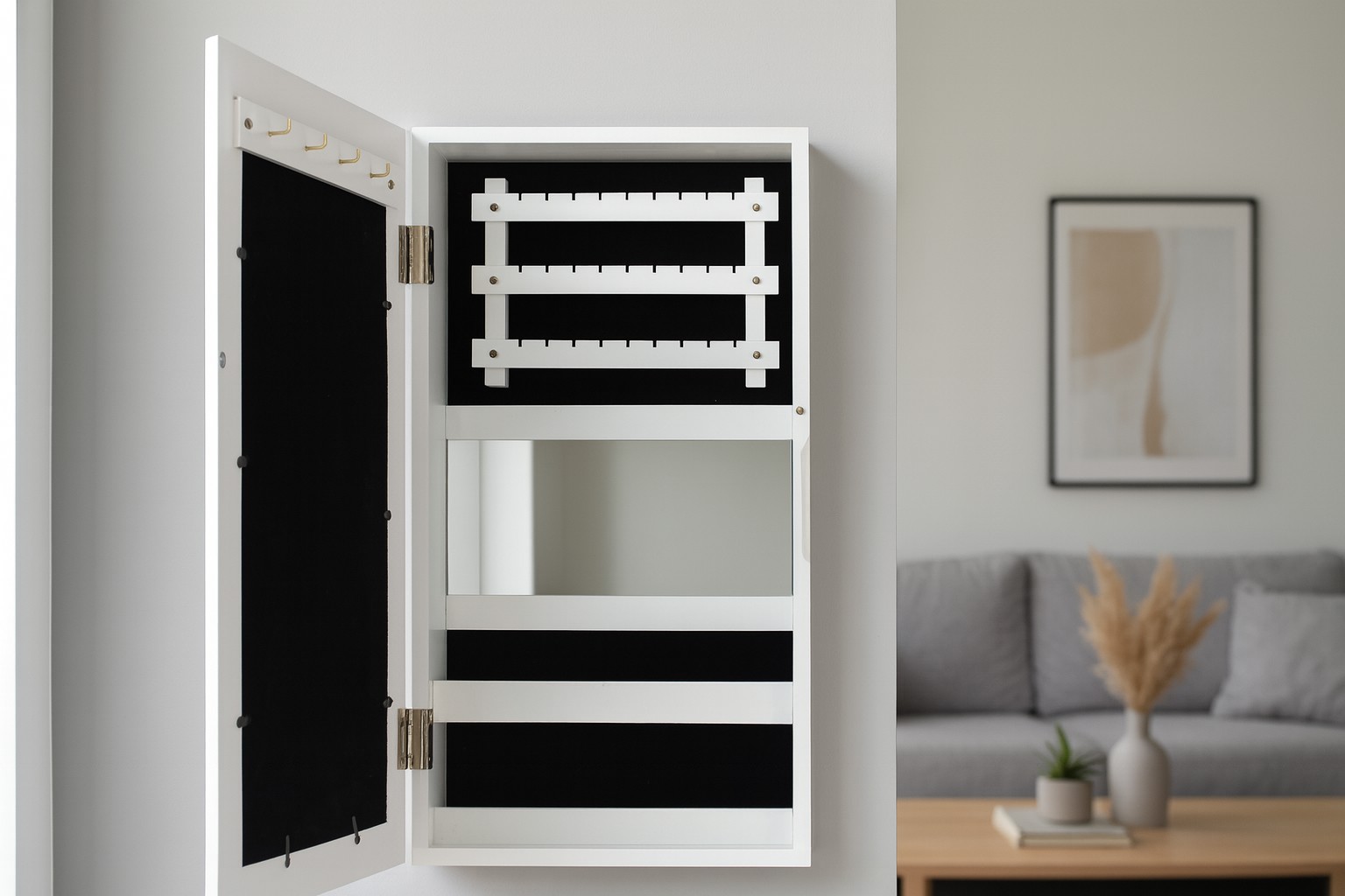 Якщо ви шукаєте ⚡ ідеальний подарунок ⚡ для особливої жінки у вашому житті, ця біла шафа для біжутерії – це те, що потрібно! Це не тільки практичний спосіб зберігання цінних аксесуарів, але й 🌺 елегантна прикраса інтер'єру 🌺, яка додасть шарму будь-якій кімнаті.