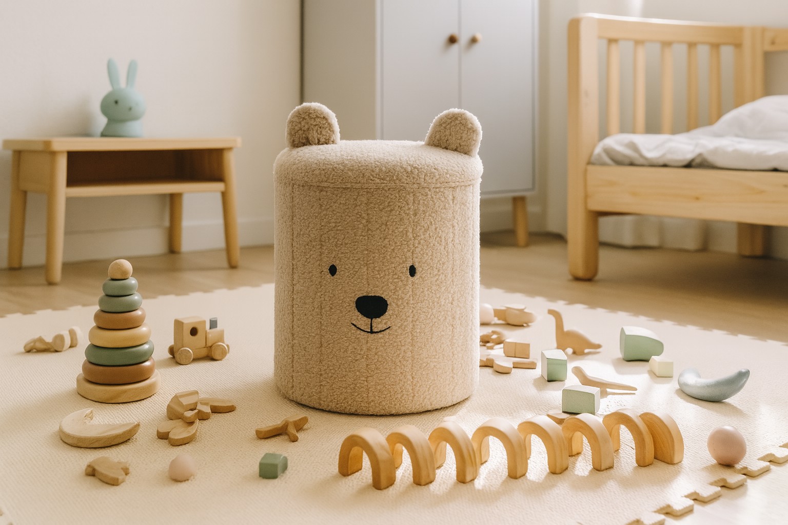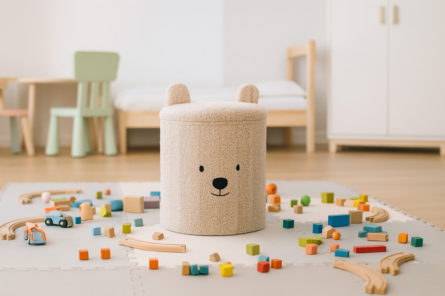 Шукаєте практичний і чарівний аксесуар для інтер'єру 🏡, який одночасно допоможе вам підтримувати порядок 🧹? Складаний пуф з ящиком для зберігання Ведмедик 🧸 – це рішення, яке поєднує функціональність ⚙️, зручність 💺 та естетику 🎨. Завдяки компактним розмірам 📏 вона чудово підійде для дитячої кімнати 👶, вітальні 🛋️, спальні 🛏️ або передпокою 🚪. Це меблі, які полюбить уся родина ❤️! ✨