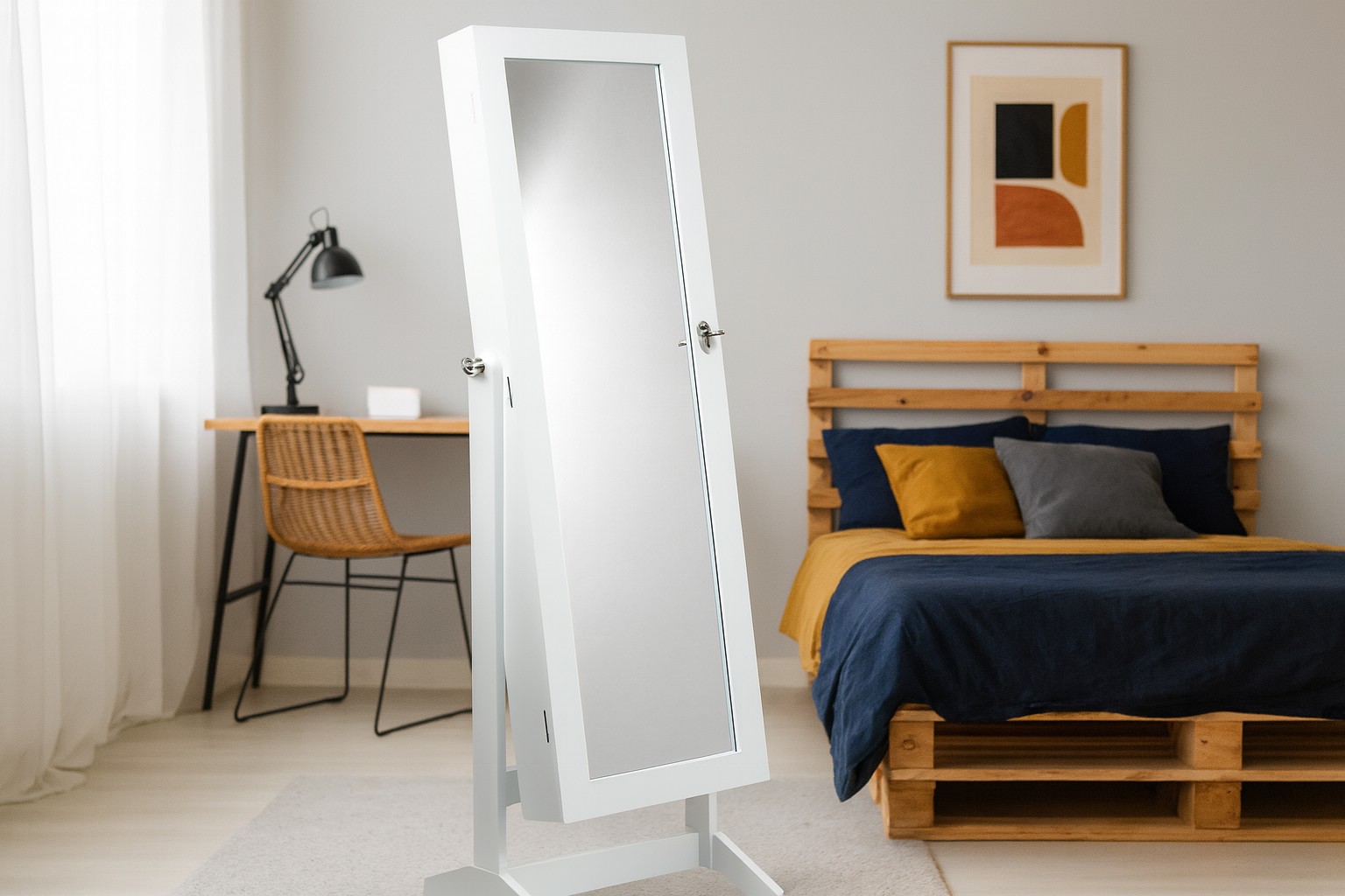 💡 Чому варто купити?Ця шафа поєднує в собі функціональність і стиль. Вона забезпечує комфорт щоденного використання, полегшує організацію ювелірних виробів та аксесуарів, а завдяки великому дзеркалу стає практичним елементом будь-якої спальні. Її елегантний вигляд дозволяє їй ідеально поєднуватися з сучасними та класичними інтер'єрами. Це ідеальний вибір як для себе, так і в якості подарунка для близької людини. ❤