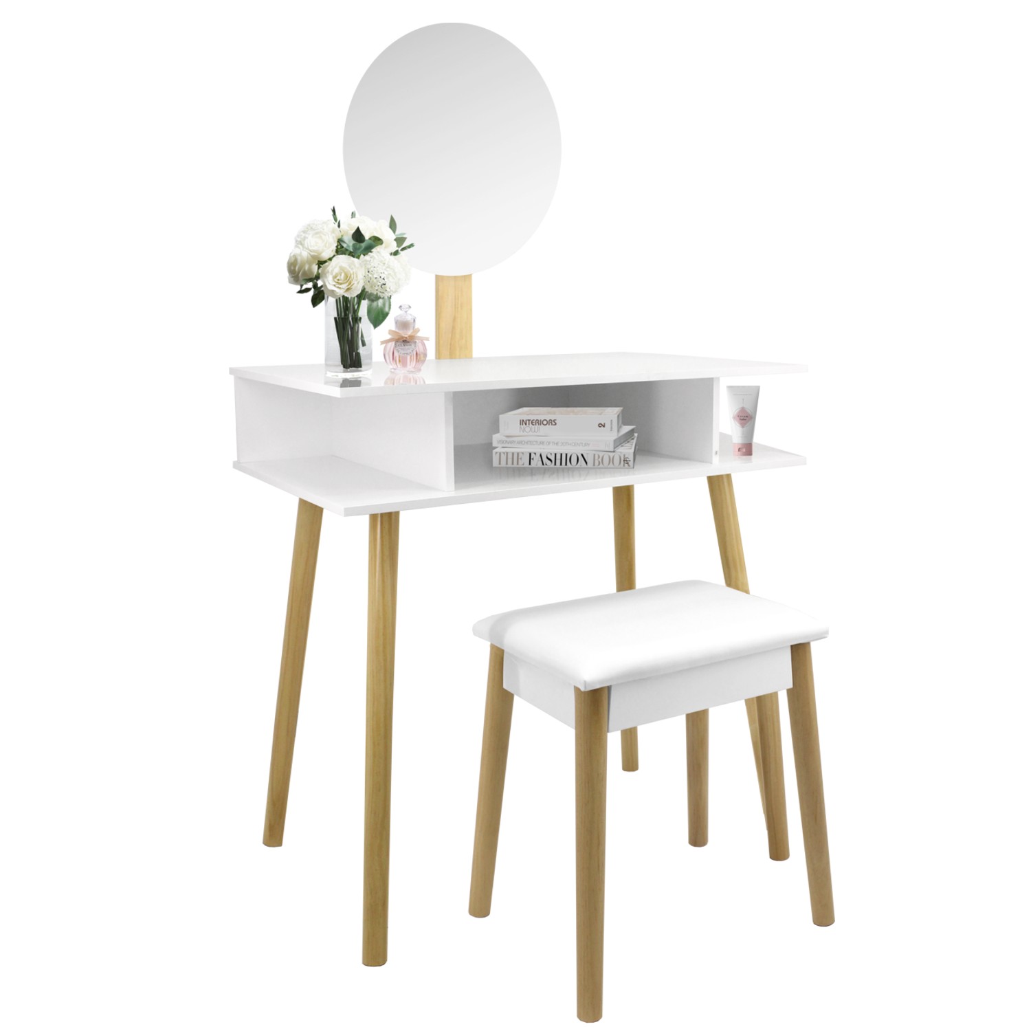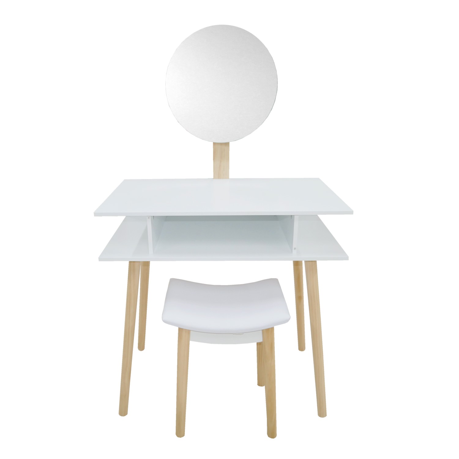 ✨ Туалетний столик для макіяжу білий з круглим дзеркалом + табурет