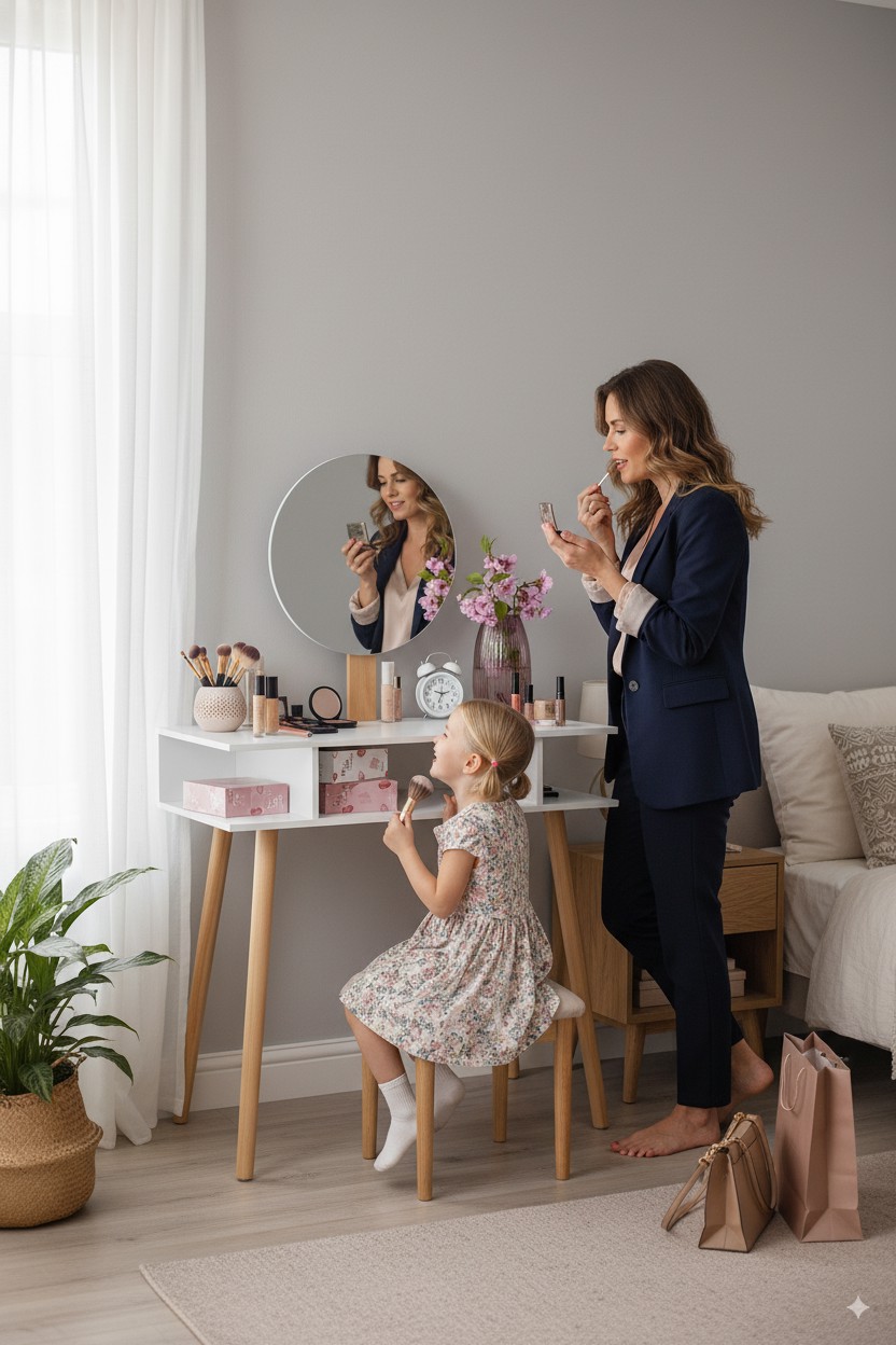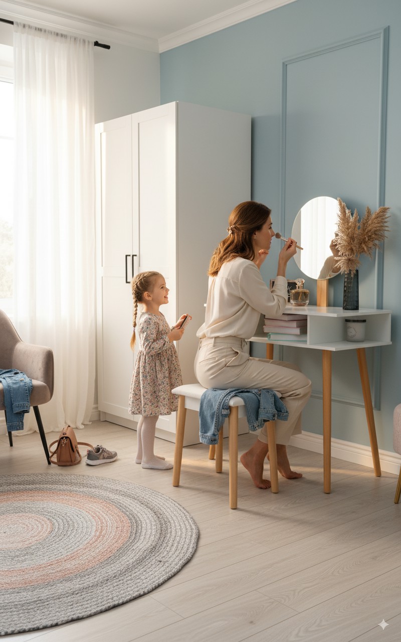 Туалетний столик – це не просто меблі 🪑, це Ваше особисте місце краси 💄✨ і релаксу 🌸. Завдяки йому всі косметичні засоби 🧴, прикраси 💍 та аксесуари 🎀 завжди будуть в порядку ✅. Кругле дзеркало 🪞 забезпечить зручність 🙌 під час щоденного нанесення макіяжу 💋, а оббитий табурет 🪑 підвищить комфорт 💆♀️ та елегантність інтер'єру 🏡.