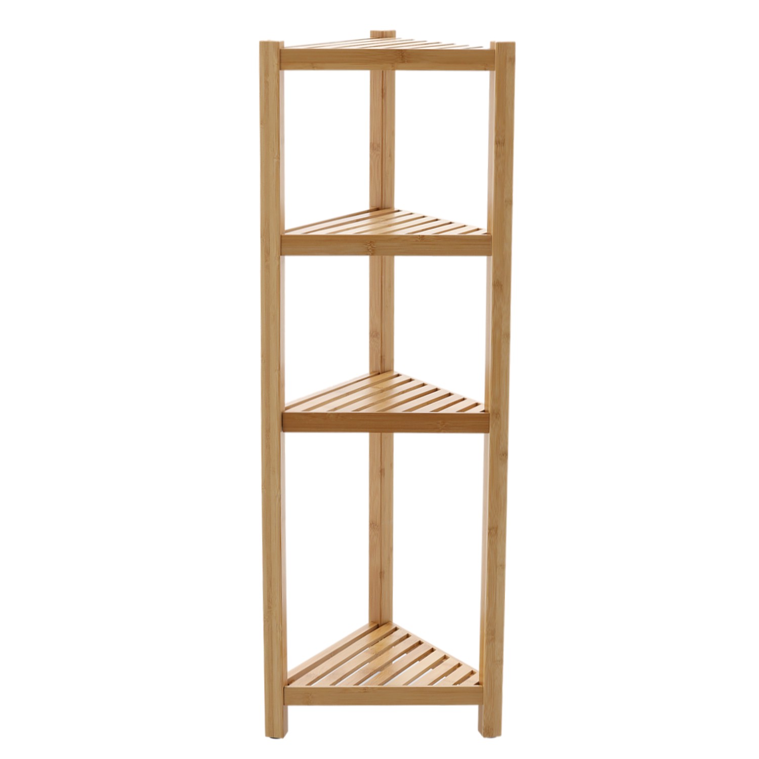 Кутовий бамбуковий стелаж — це елегантний і функціональний предмет меблів, який ідеально використовує невеликі простори, особливо в кутах кімнат.
