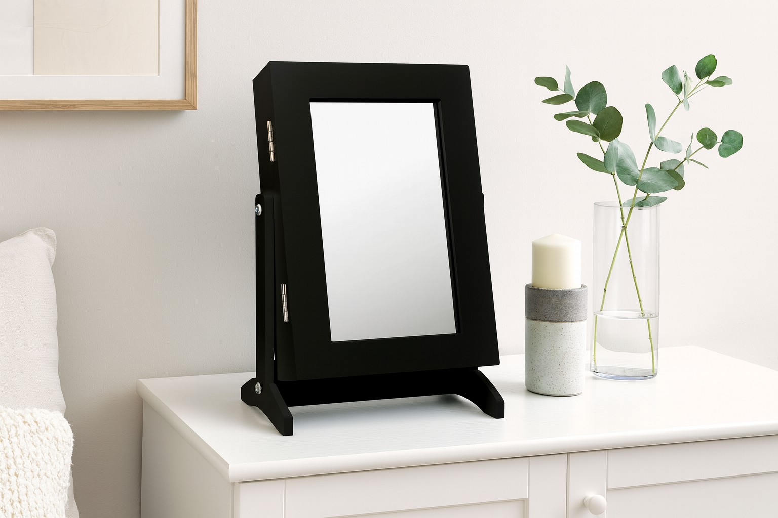 ⭐ Шафа для біжутерії з дзеркалом, чорна ⭐