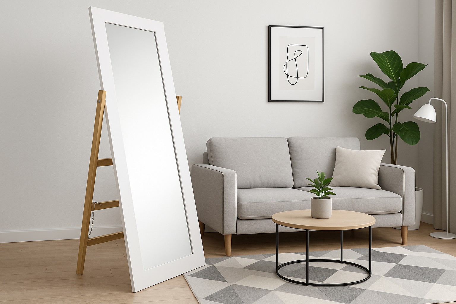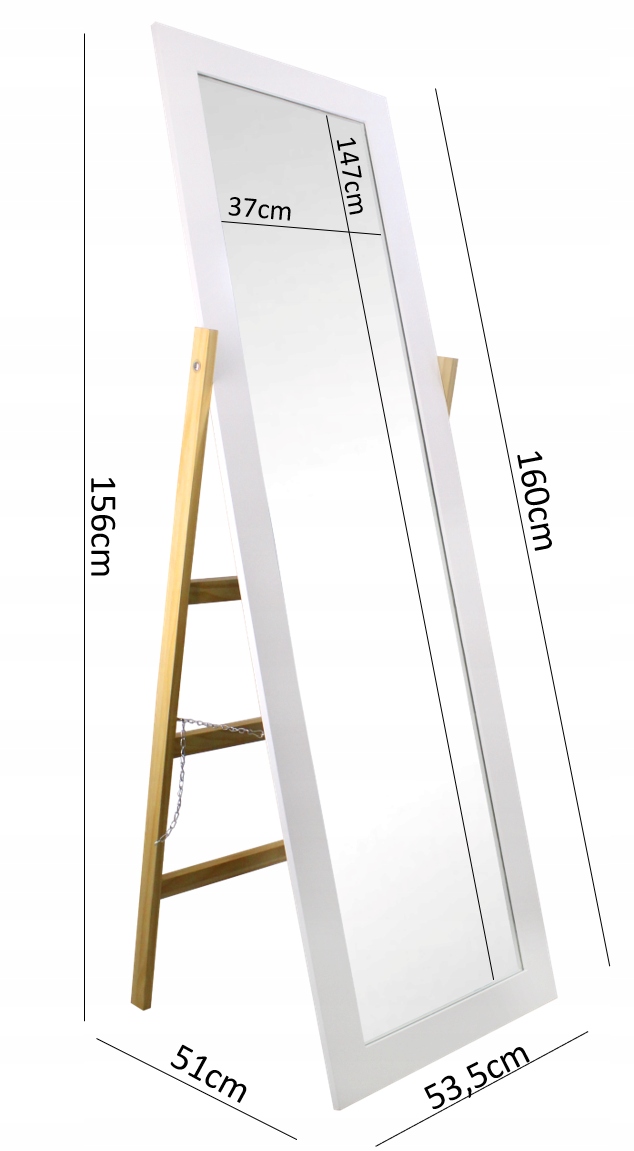 Дзеркало на підставці з дерев'яними ніжками у формі драбини — це унікальний вибір для людей, які цінують практичні та естетичні рішення. Ви отримуєте продукт, який є стабільним, функціональним і позачасовим. Завдяки своєму сучасному стилю та великим розмірам, він додасть кожному інтер'єру унікального характеру.