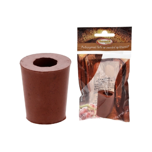 Гумова пробка з отвором — це найзручніший спосіб закрити балон. М'який матеріал дозволяє без проблем встановити пробку в горловину посудини. Водночас гума пристосовується до форми горловини, що гарантує герметичне закриття. У пробці є отвір, який дозволяє встановити ферментаційну трубку. Виріб виготовлений з матеріалу, який не вступає в реакцію з інгредієнтами закваски. Завдяки цьому ви можете бути впевнені, що пробка не вплине на смак або запах виробленого напою.