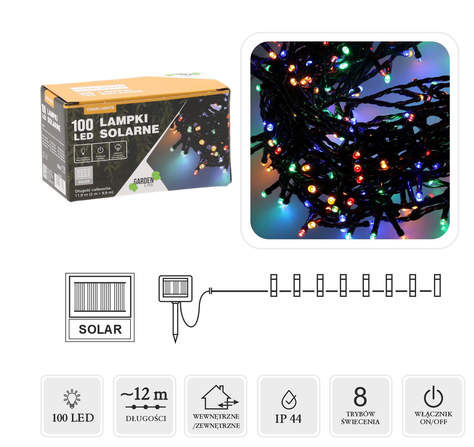 СОЛЯРНІ СВІТЛОДІОДНІ ЛАМПИ 100L МУЛЬТИКОЛЬОРОВІ, ДОВЖИНА 2 + 10 М 🌈