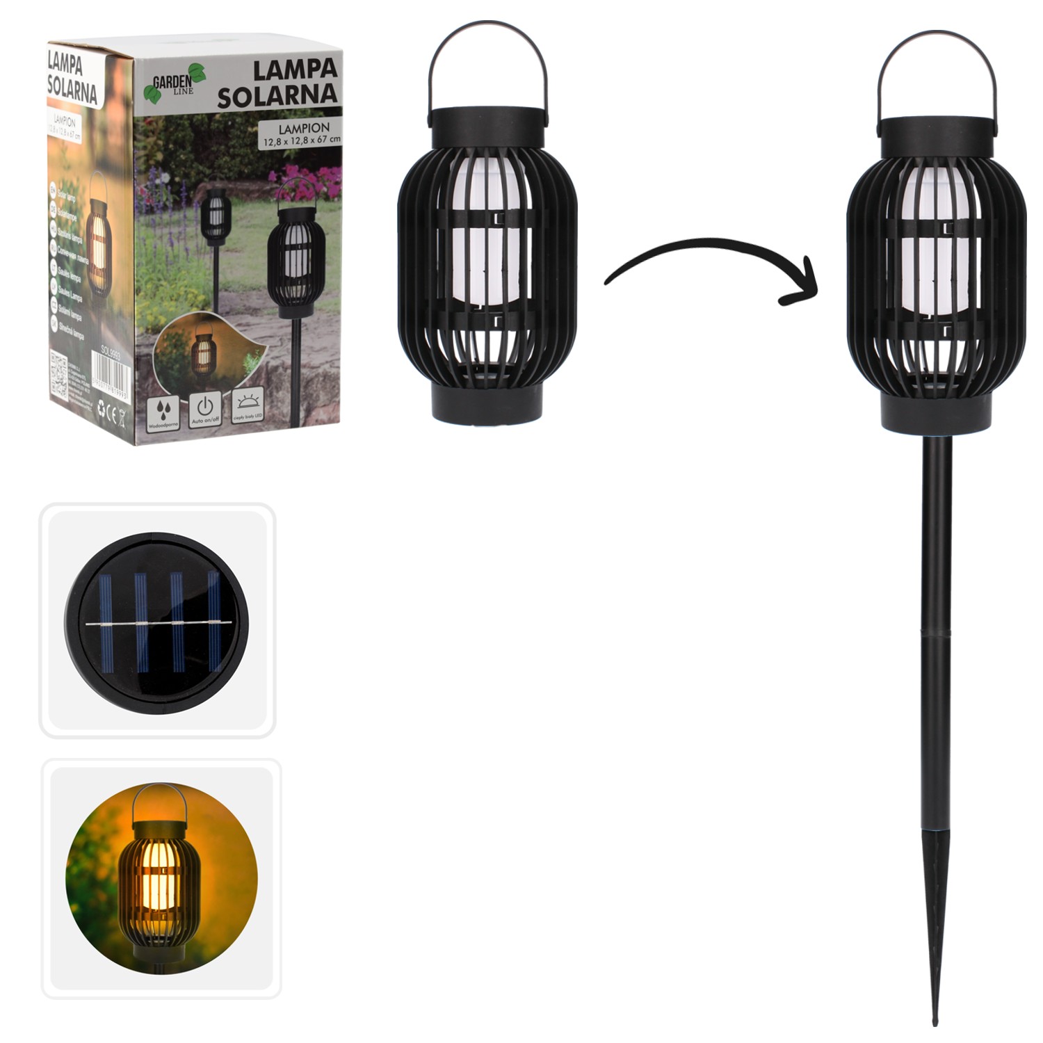 Сонячна лампа LED. Ідеально підходить для саду. Її можна встановити в будь-якому місці, де є відповідне сонячне освітлення. Сонячні лампи найкраще виглядають, встановлені вздовж доріжок, алейок, під'їздів, на терасах або верандах. Вони підкреслюють і доповнюють садову архітектуру, зокрема водоймища або рослинні композиції. Лампи живляться сонячною енергією, тому не вимагають додаткових фінансових витрат.• Лінія продукту: Garden Line• Розміри продукту: 128 x 128 x 670 мм• Сонячна батарея: полікристалічний кремній (полікремній) 2 В 80 мАг• Ємність батареї: 200 мАг • Середня напруга: 1 x 1,2 В• Батарея AA• Нікель-металгідридна батарея• Тип лампочки: 36 x біла світлодіодна лампочка• Основний матеріал виробу: пластик • Основний колір виробу: чорний• Ступінь захисту виробу: IP44• Стійкий до атмосферних умов.• Кріпиться до землі за допомогою спеціального пластикового штифта • Упаковка: 12 одиниць в картонній коробці